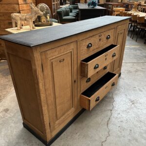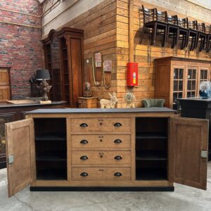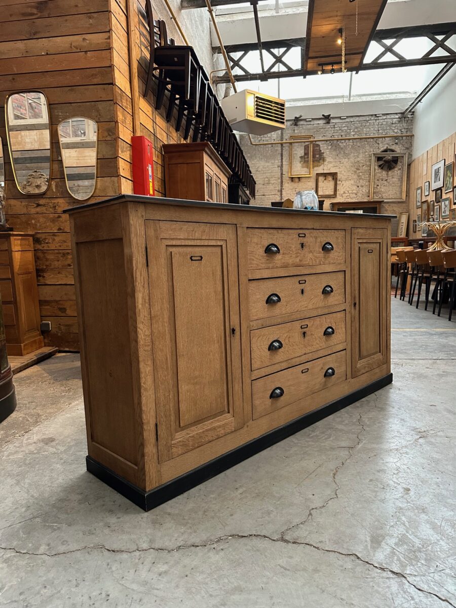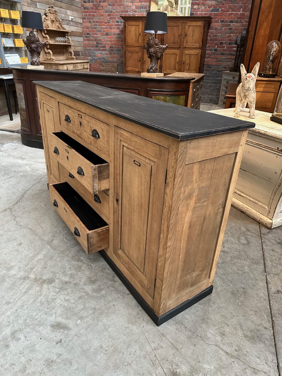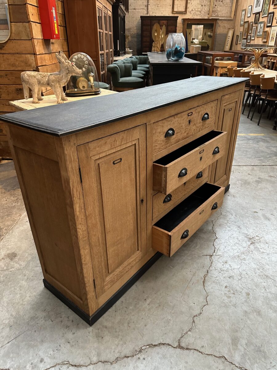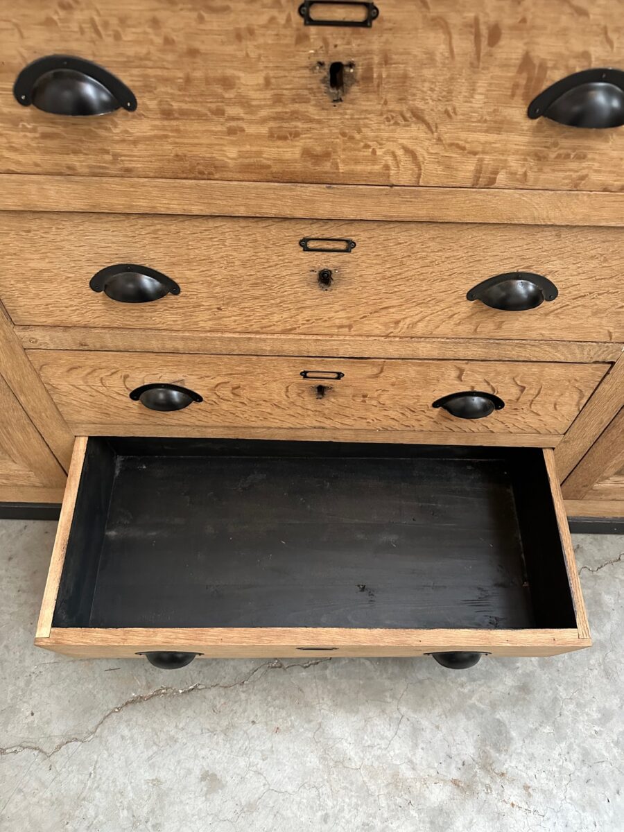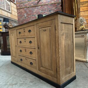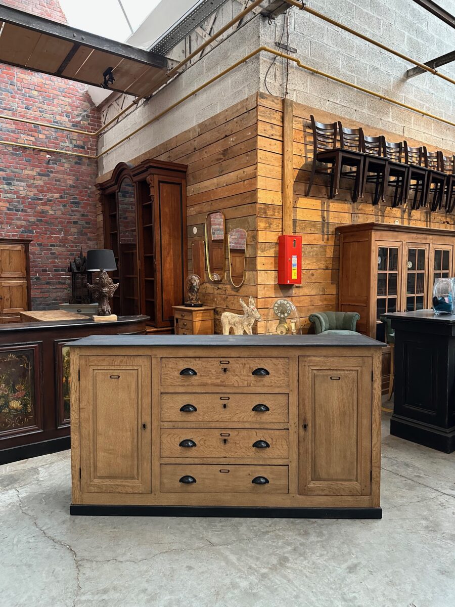 Cet ancien meuble de métier en chêne massif a été entièrement restauré