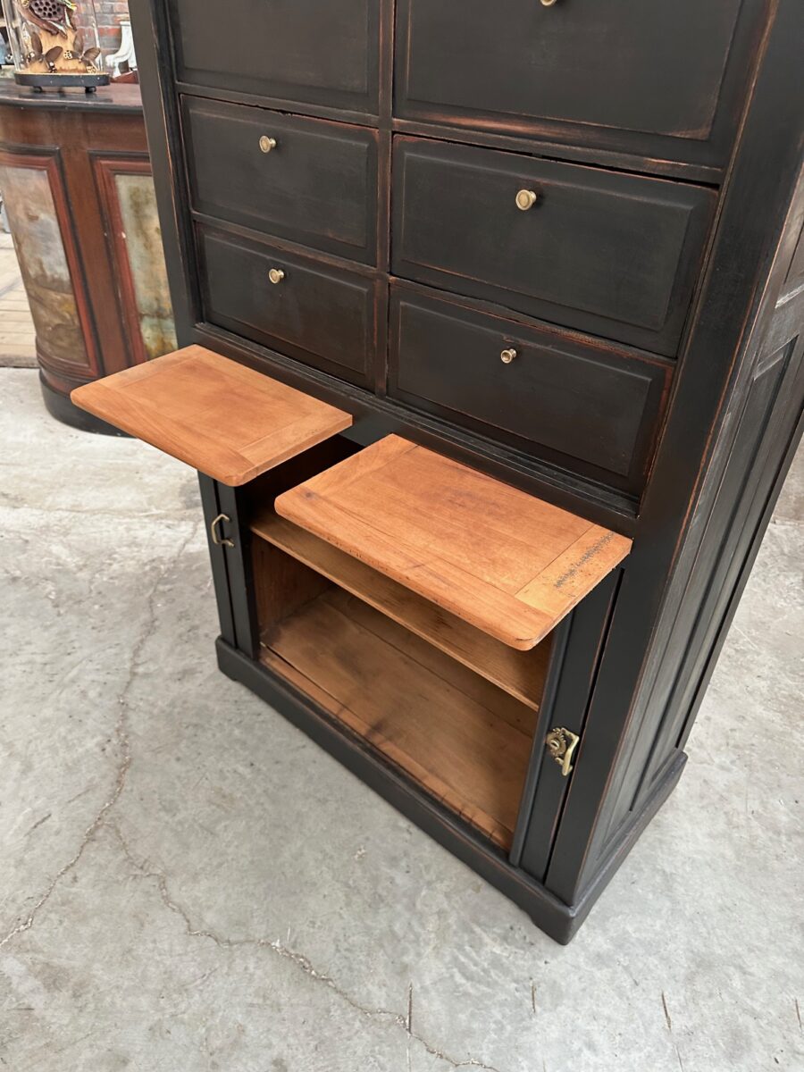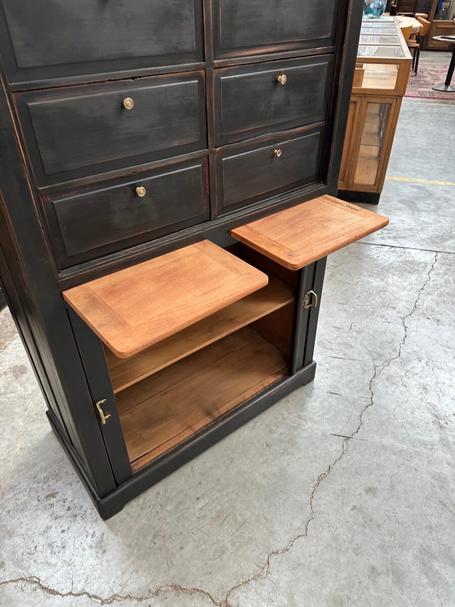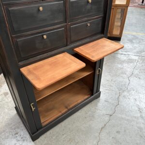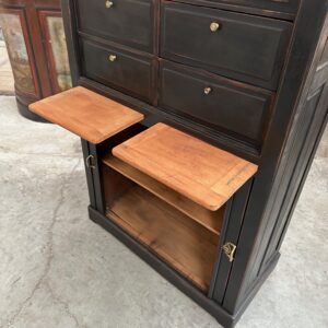 Il dispose dans sa partie haute de 12 clapets ouvrant sur des casiers de rangement. Sa partie basse est dotée de 2 tablettes rétractables et de 2 portes coulissantes ouvrant sur une étagère.