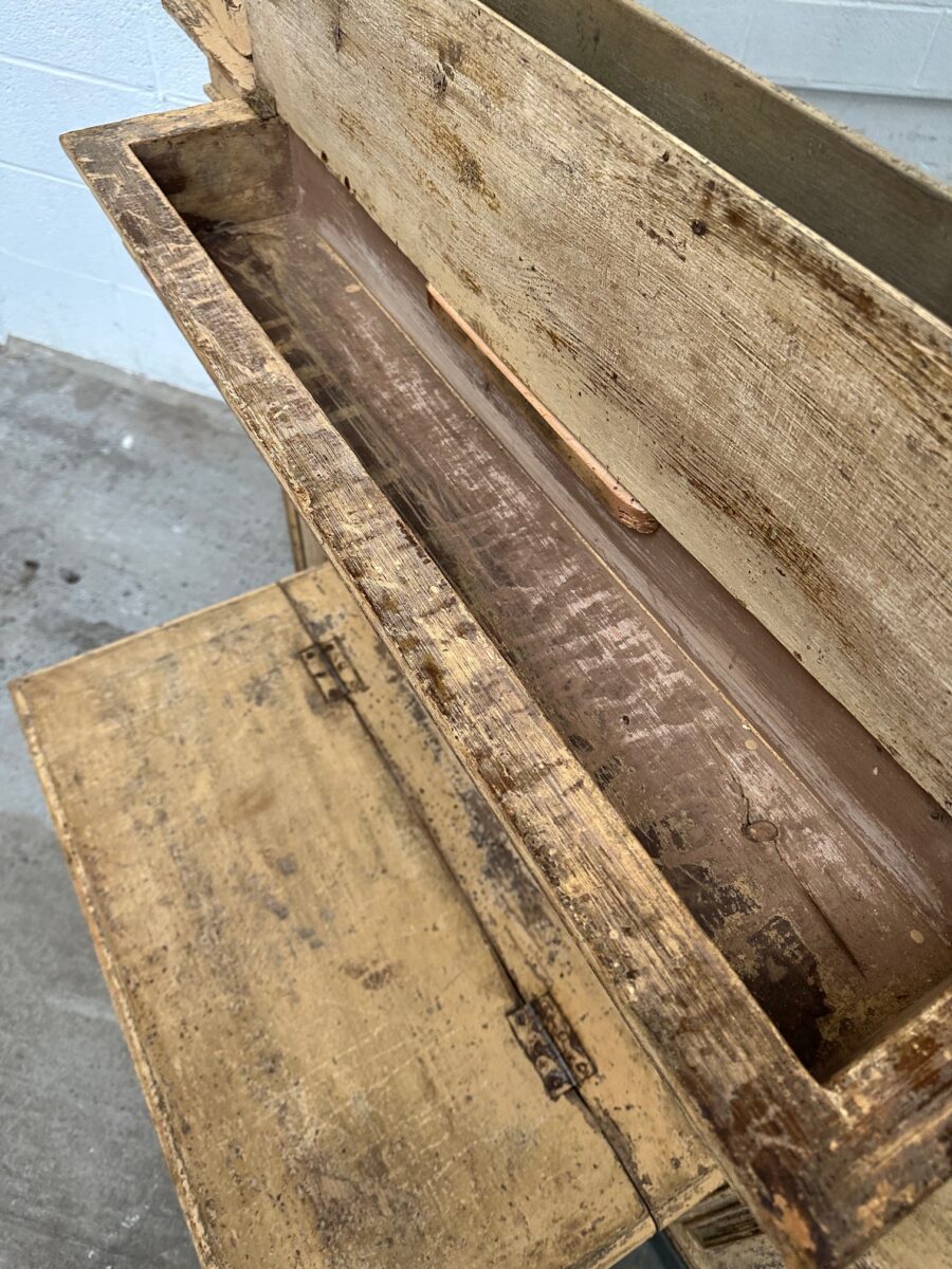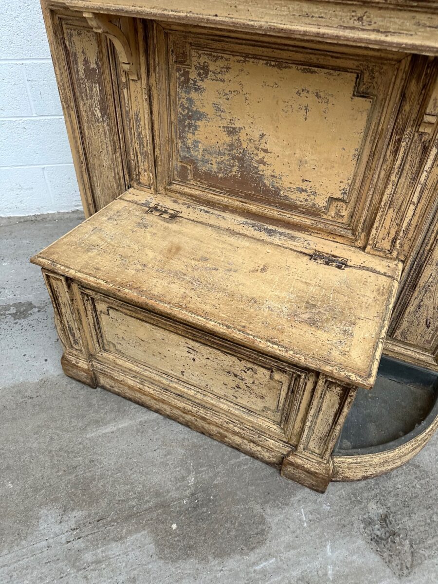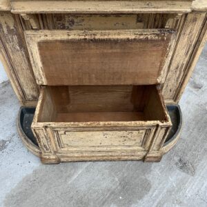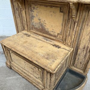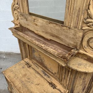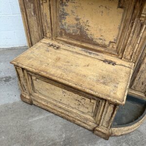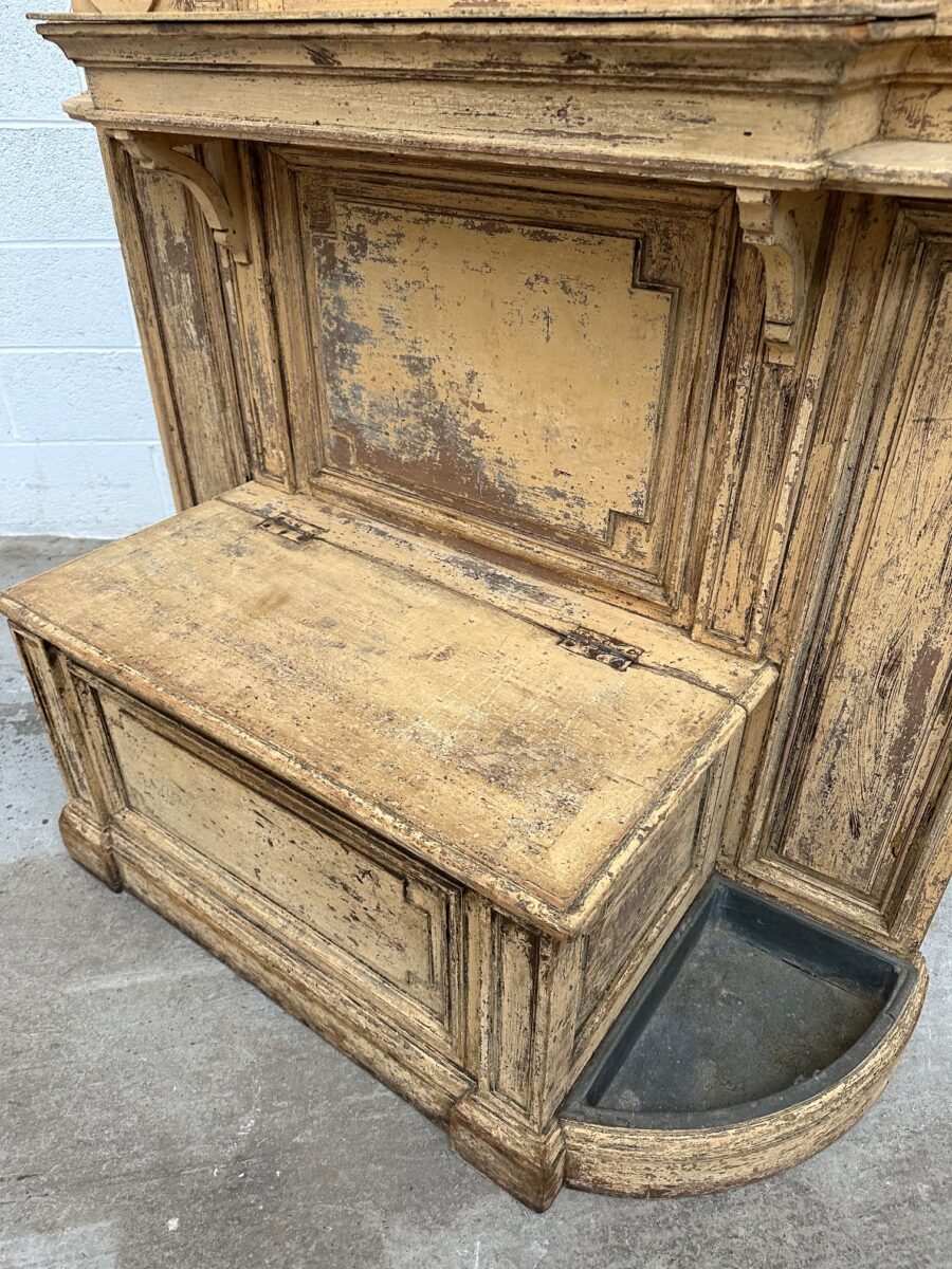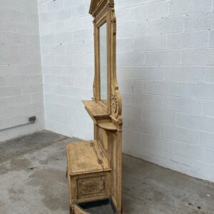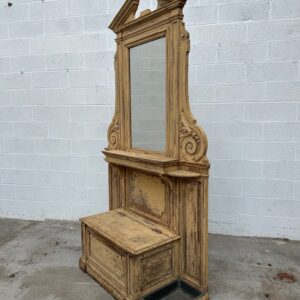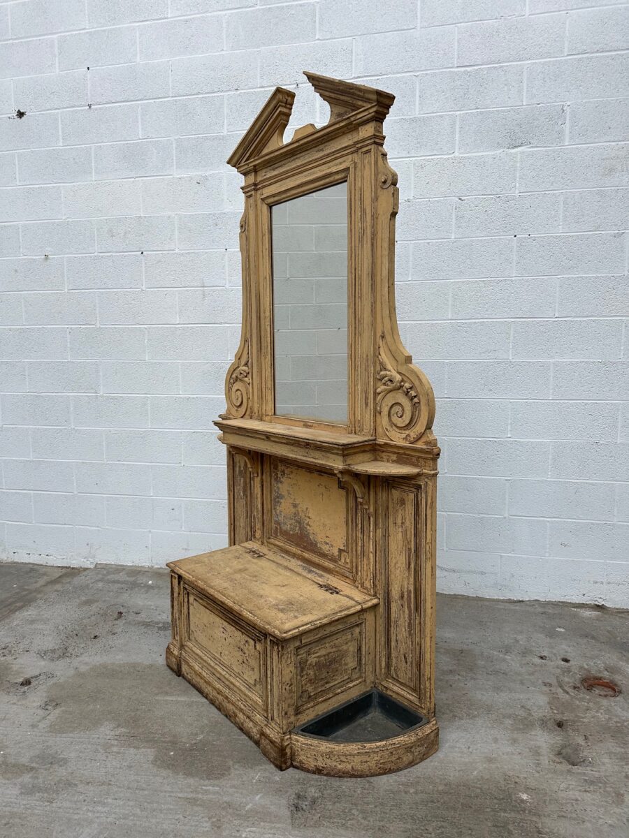 Il dispose d’un petit coffre sous le miroir permettant d’y ranger les clefs et d’un autre grand coffre/banc .