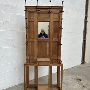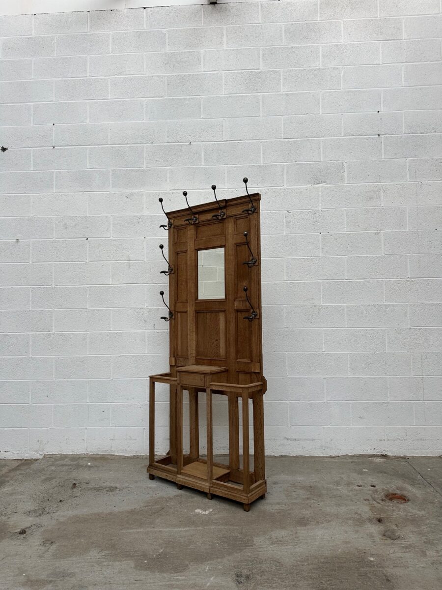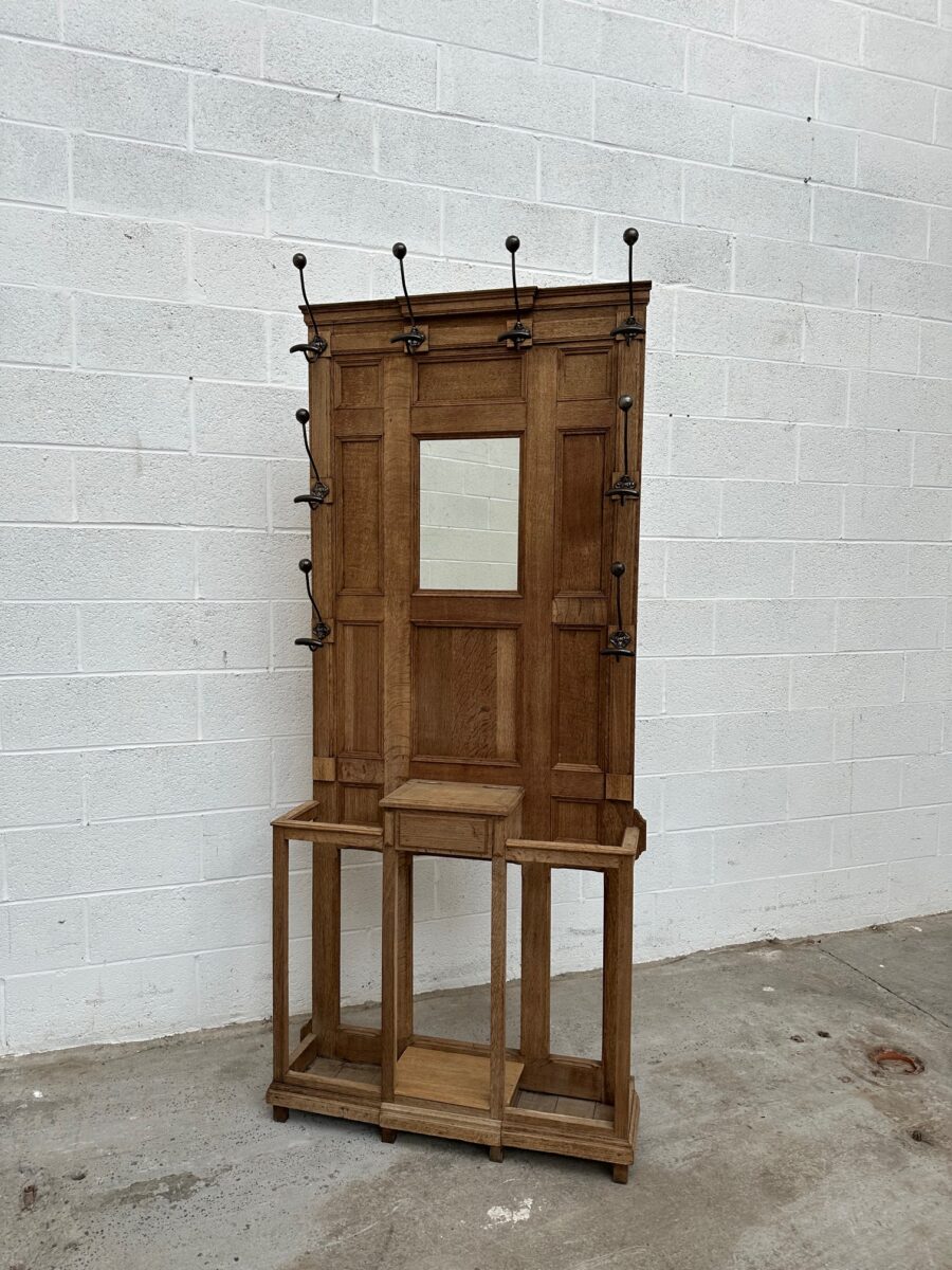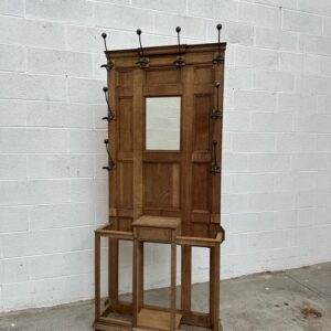 Il dispose d’une miroir central, de 8 patères et d’un premier coffre de rangement sous le miroir.