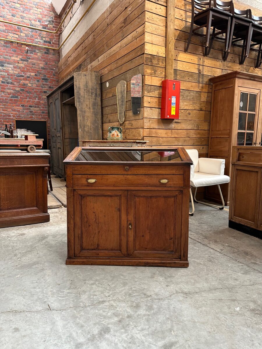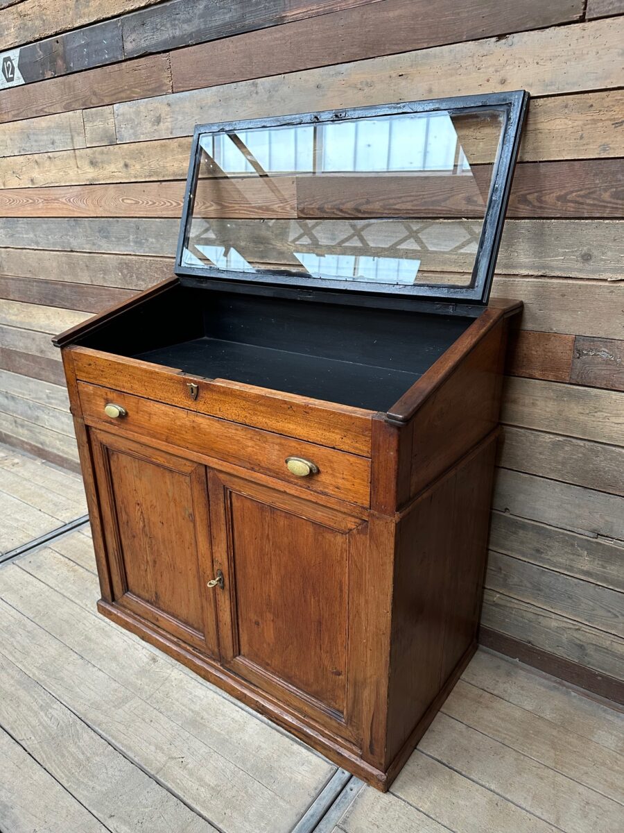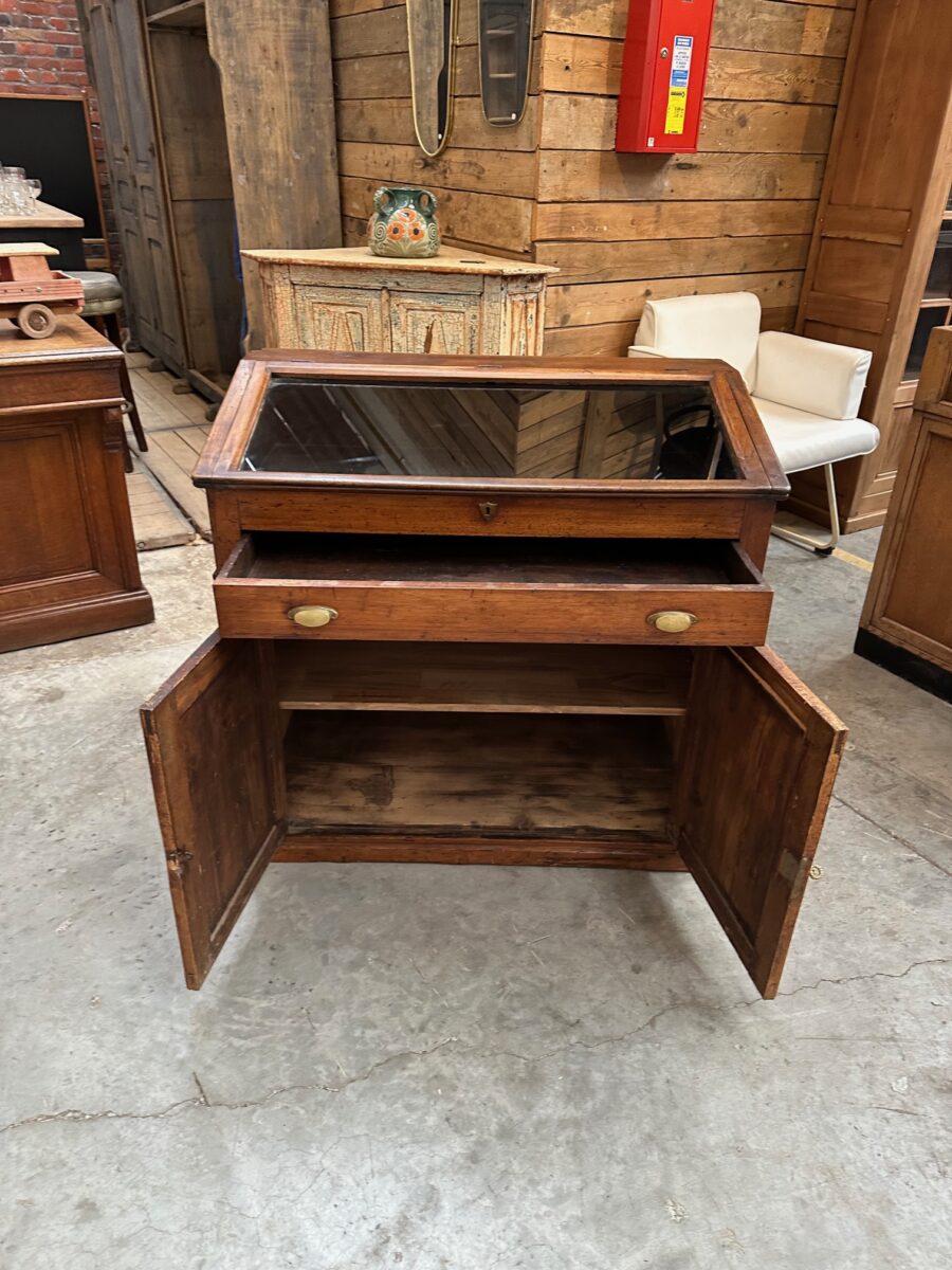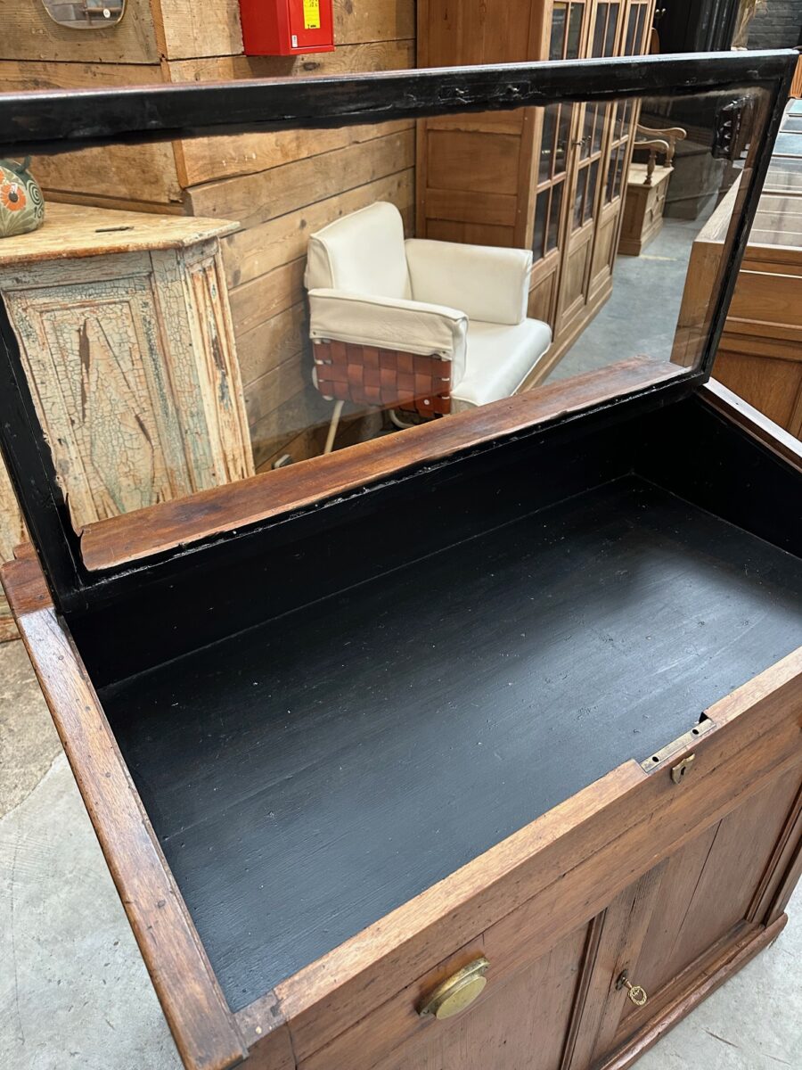 Cette ancienne vitrine en sapin et noyer a été entièrement restaurée