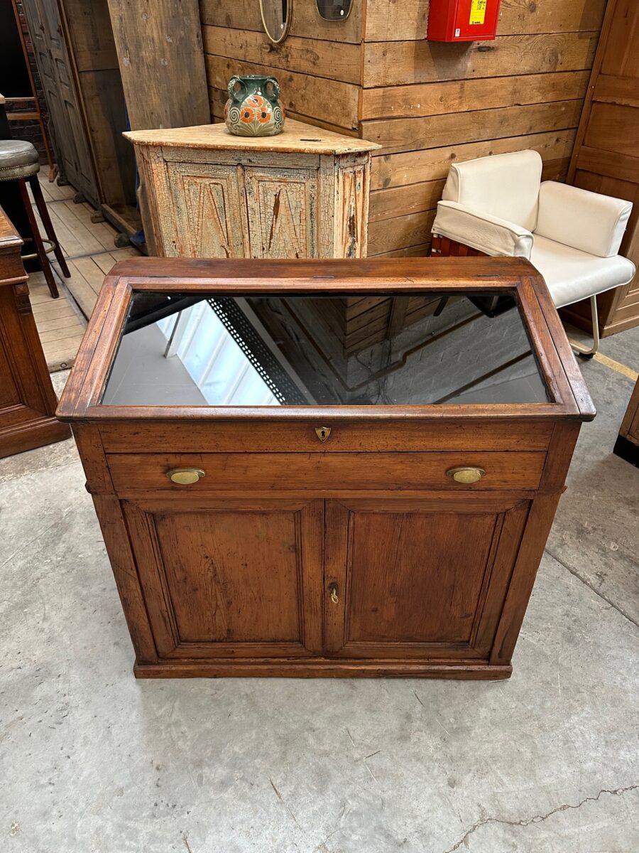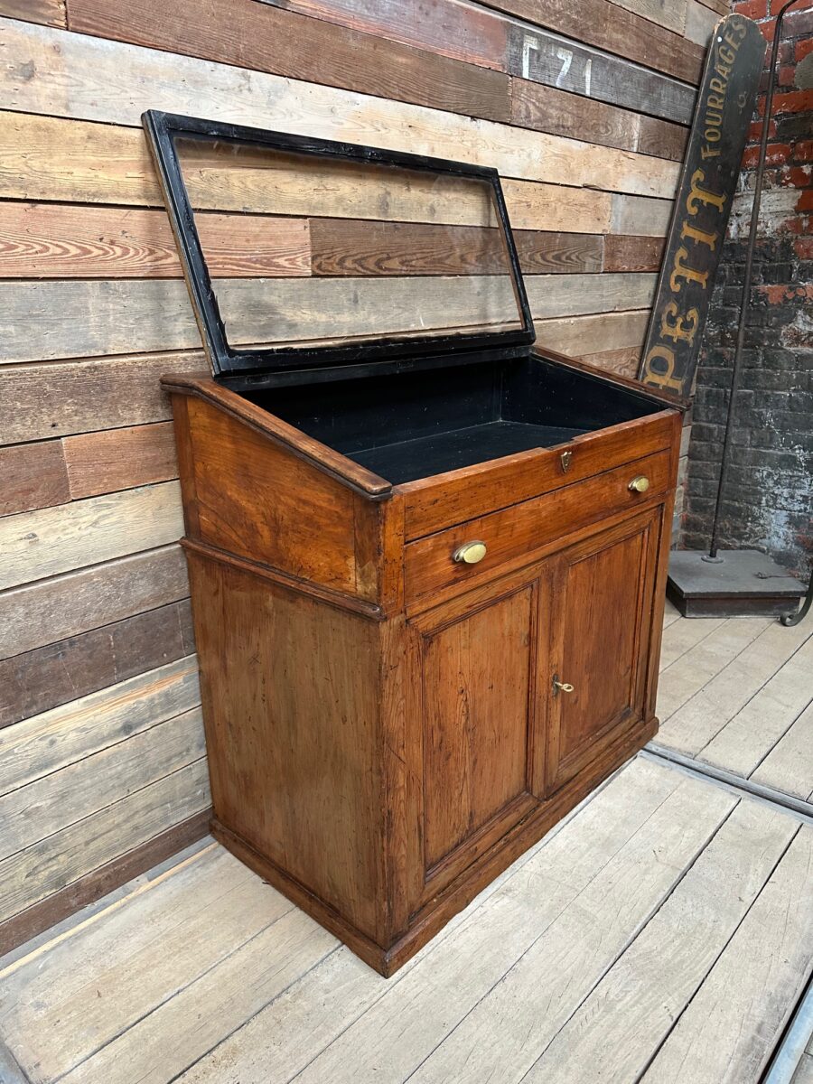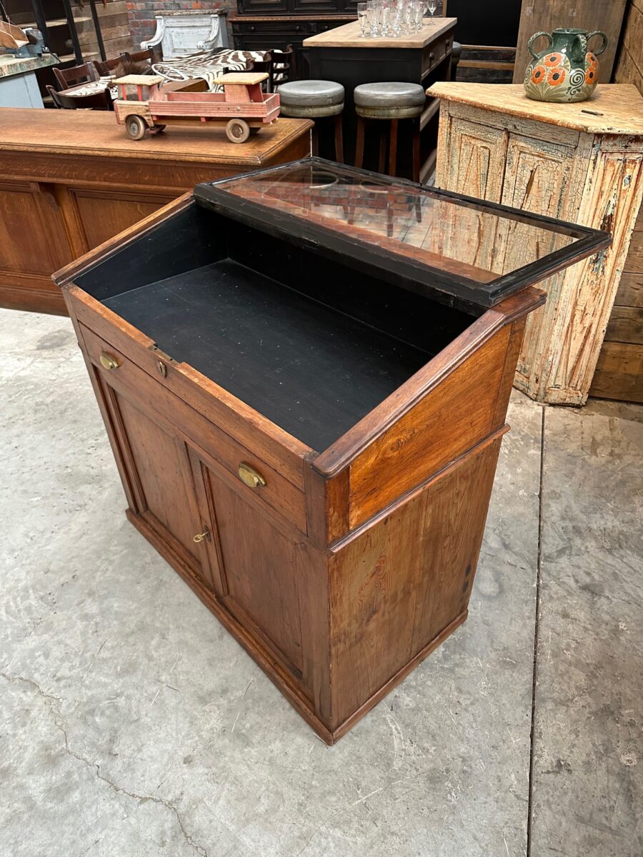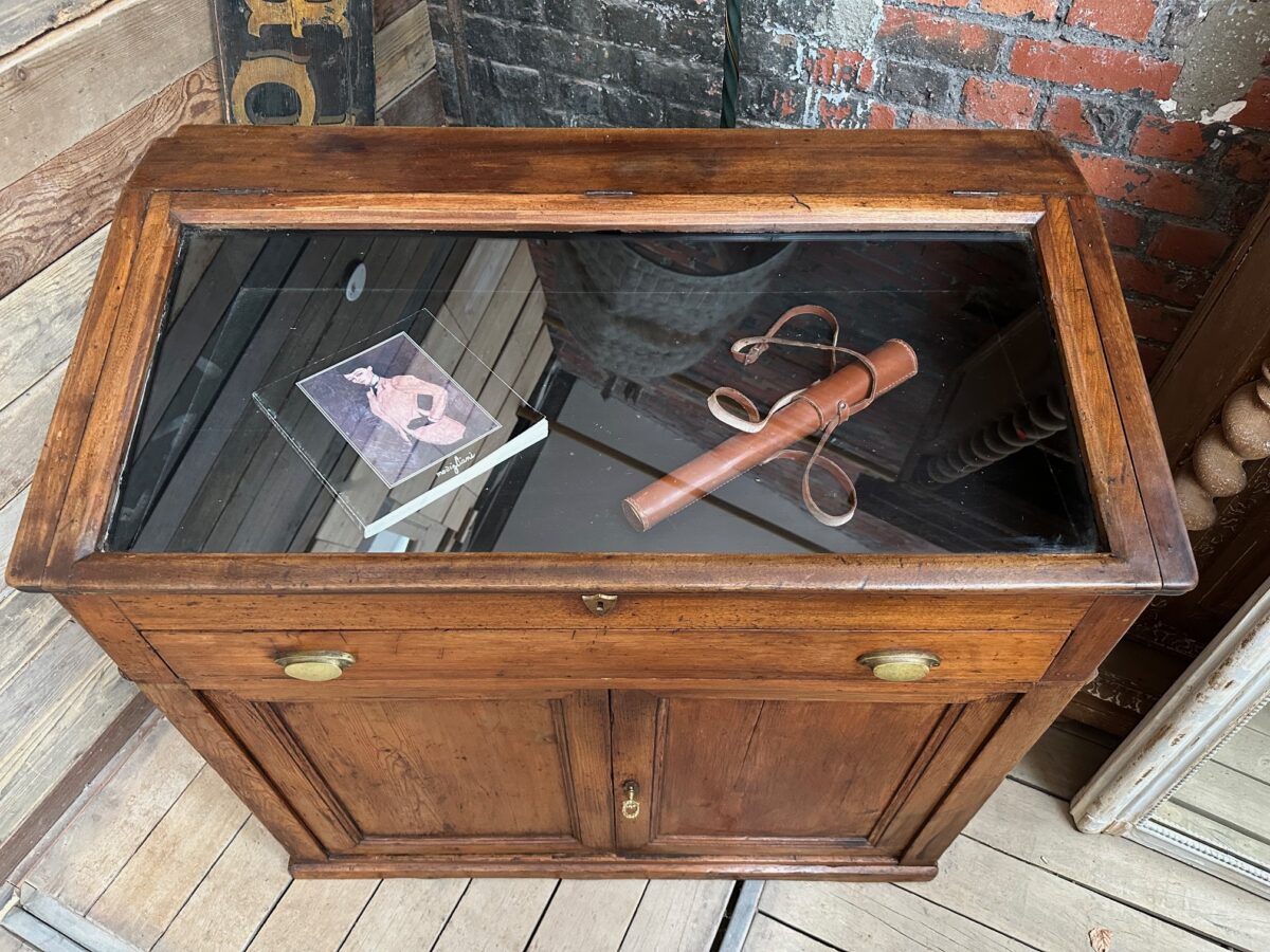 Cette ancienne vitrine en sapin et noyer a été entièrement restaurée