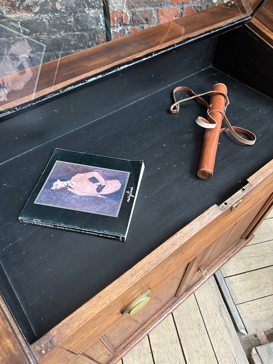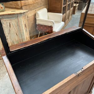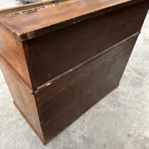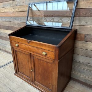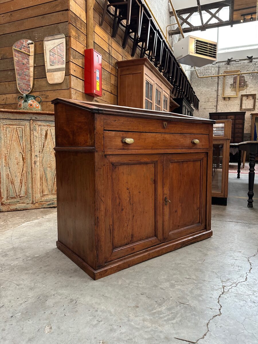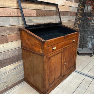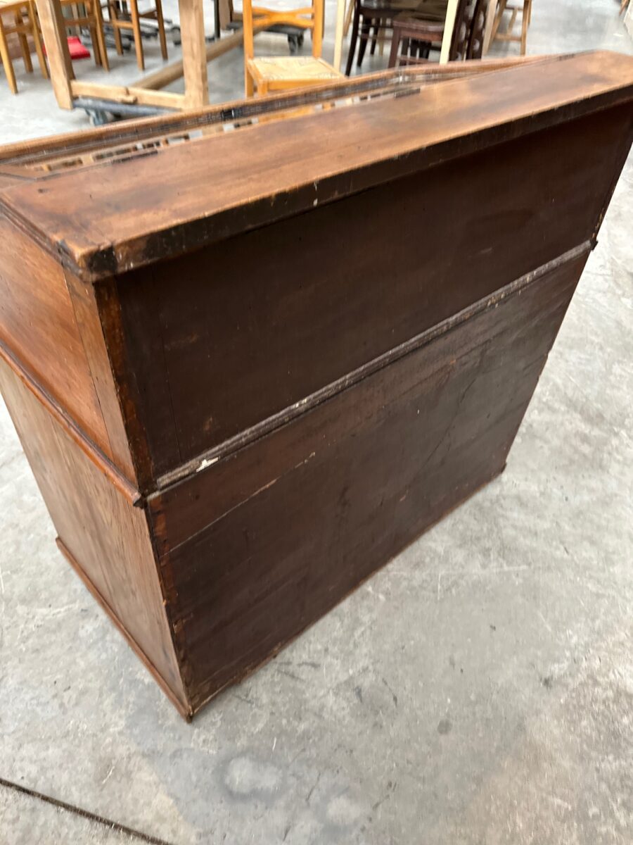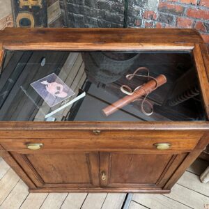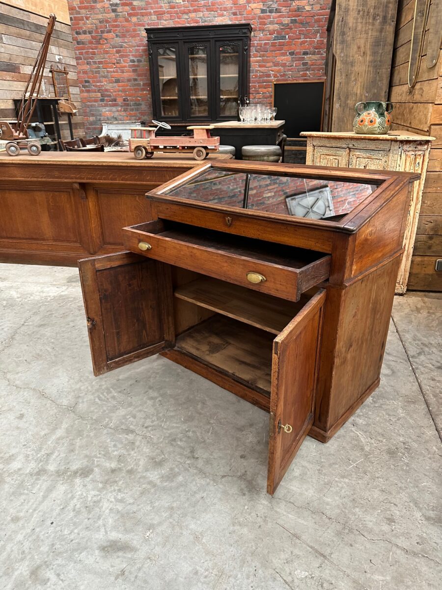 Cette ancienne vitrine en sapin et noyer a été entièrement restaurée