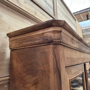Cette vitrine ancienne en noyer a été entièrement restaurée