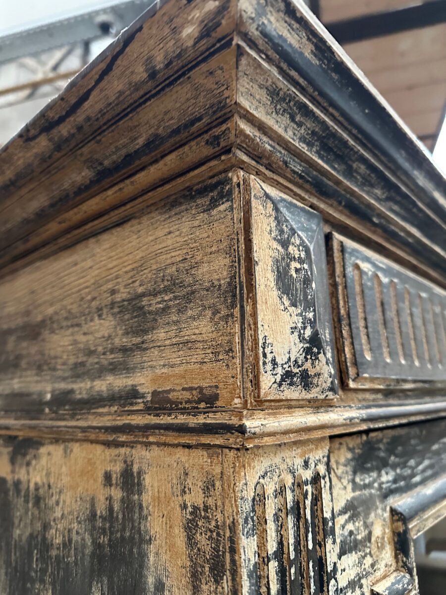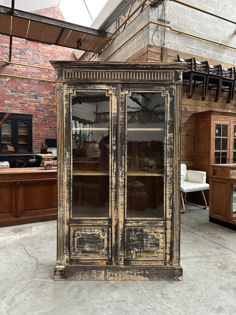 Cette ancienne vitrine patinée a été entièrement restaurée
