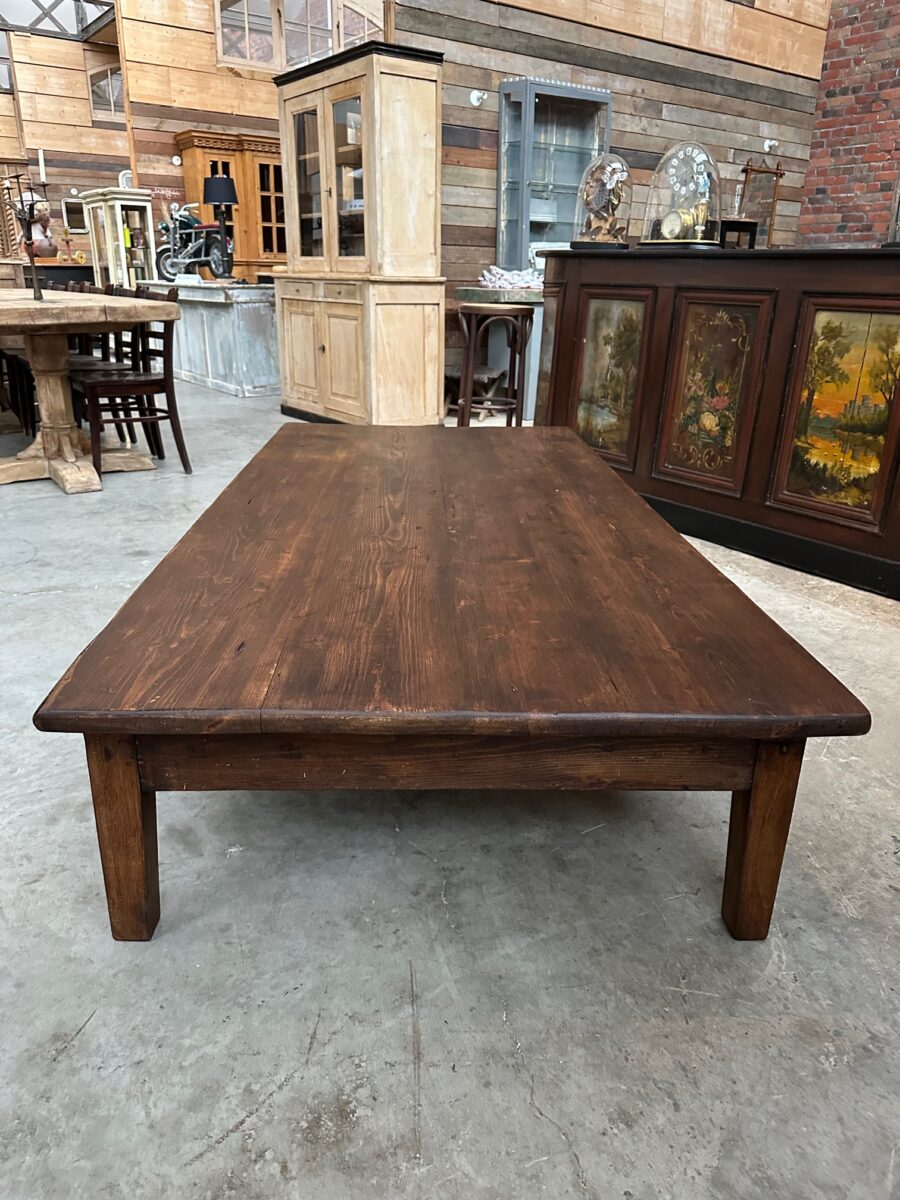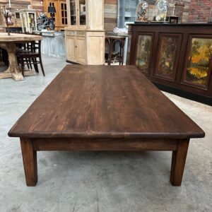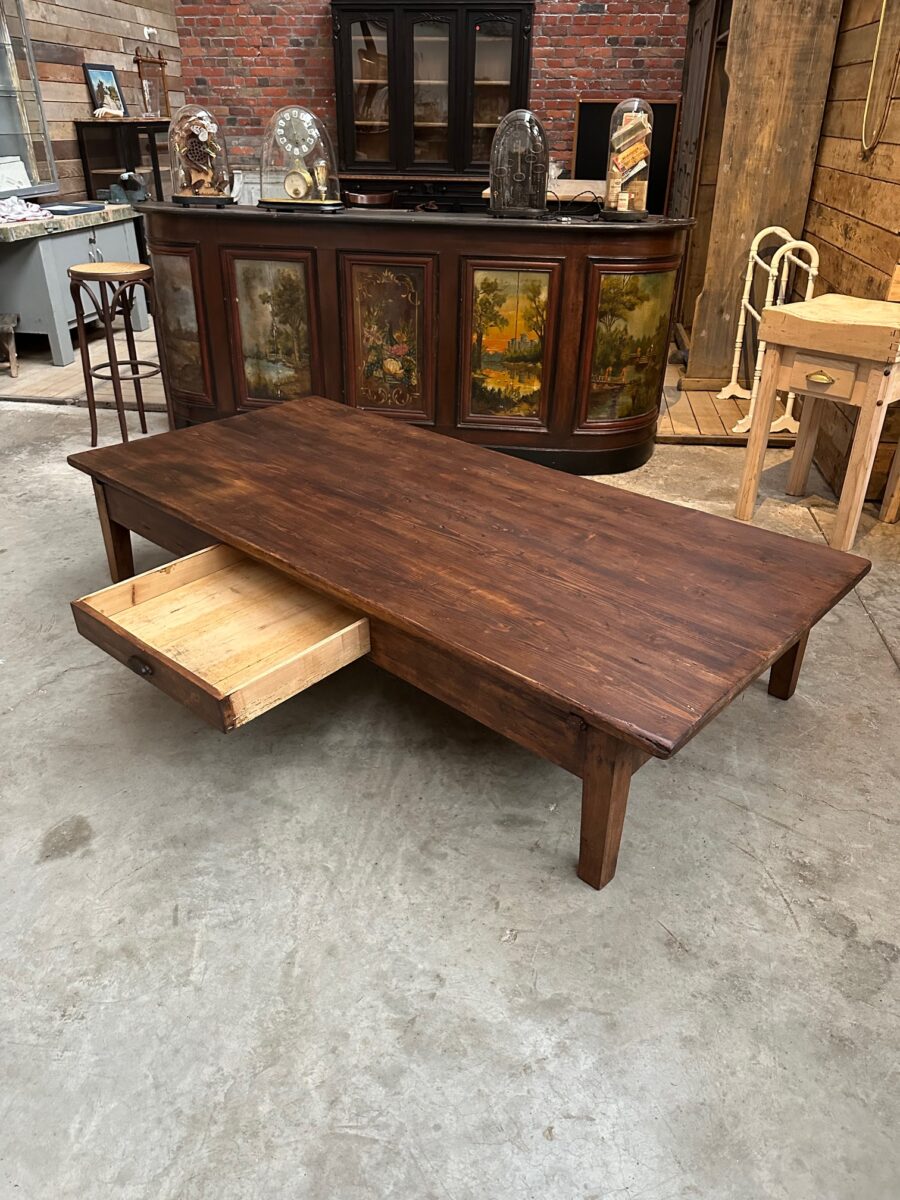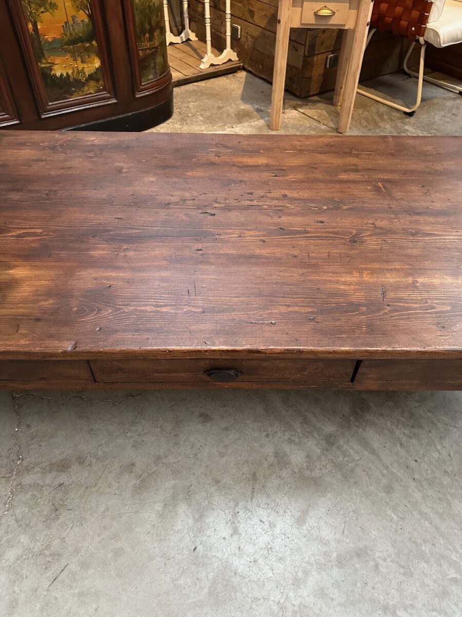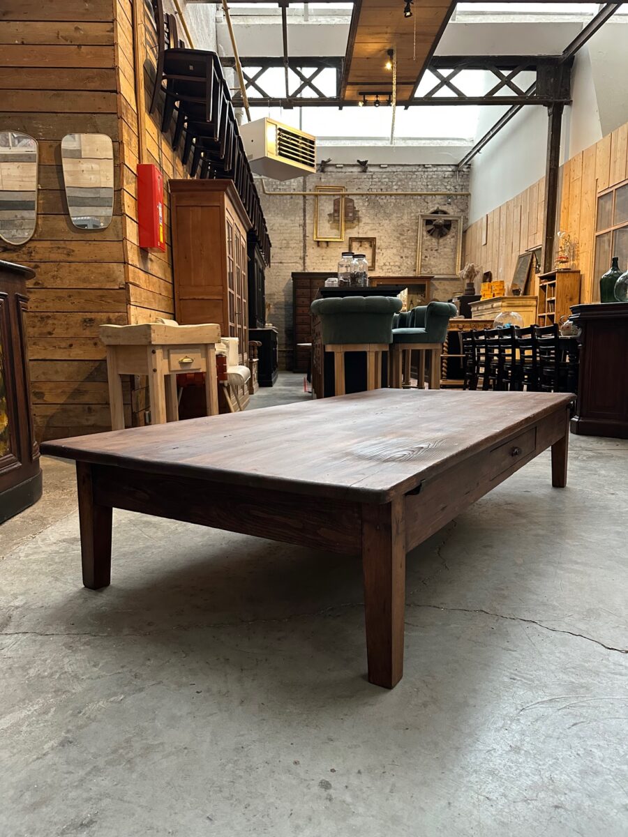 Cette impressionnante table basse en sapin a été totalement restaurée.