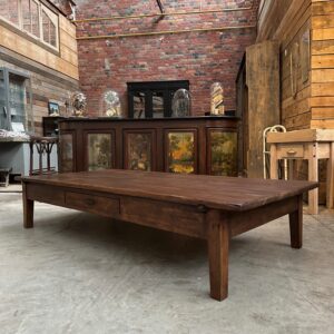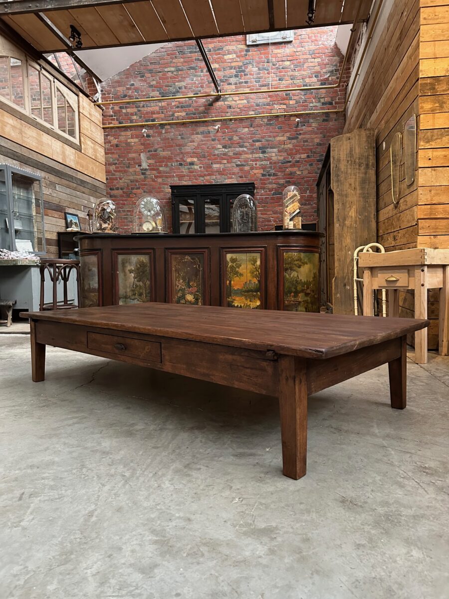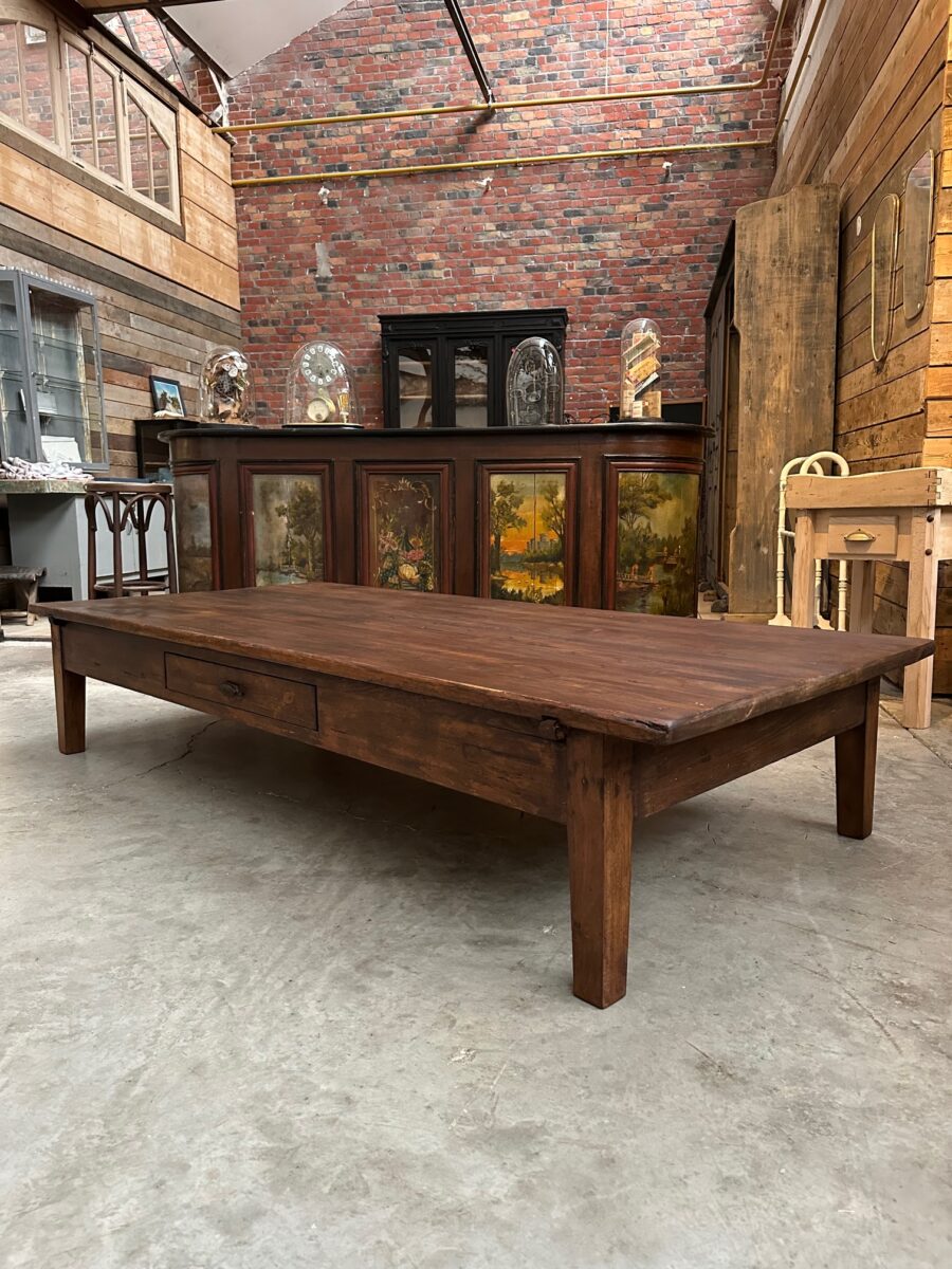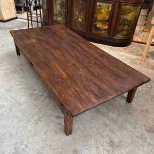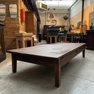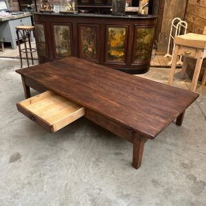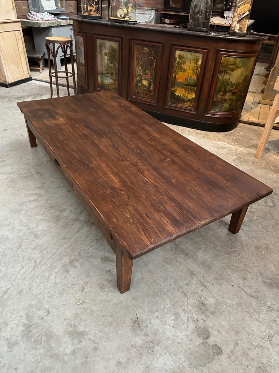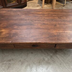 Cette impressionnante table basse en sapin a été totalement restaurée.
