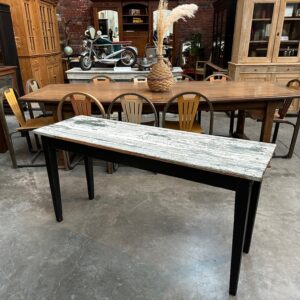 Retour Console de travail XXème Mobilier, Tables Cette console a été totalement restaurée Nous avons conservé la sublime patine du plateau ! Ses dimensions sont idéales pour une entrée ou derrière un canapé Elle peut également servir de bureau Hauteur sous bandeau : 64cm Détails du produit Dimensions (cm) : H 75 x P 49 x L 150 Composition : Sapin Nombre de pièces : 1 Disponibilité : Disponible en stock Demander un prix