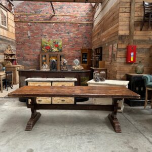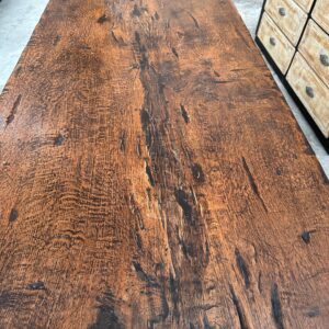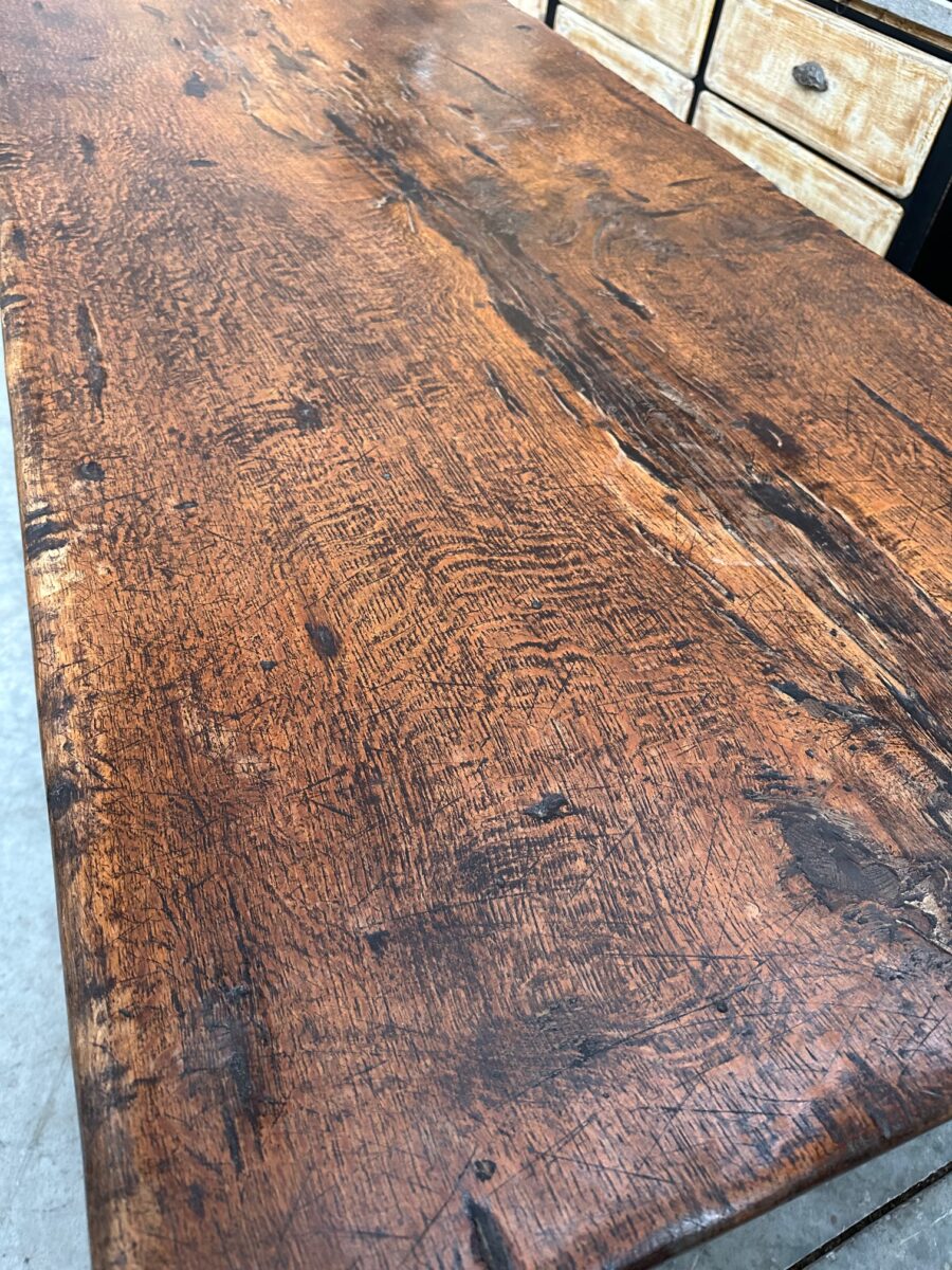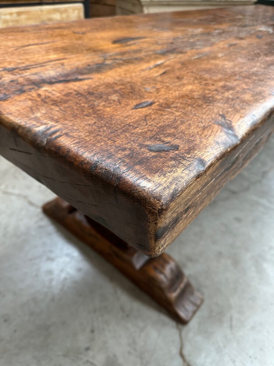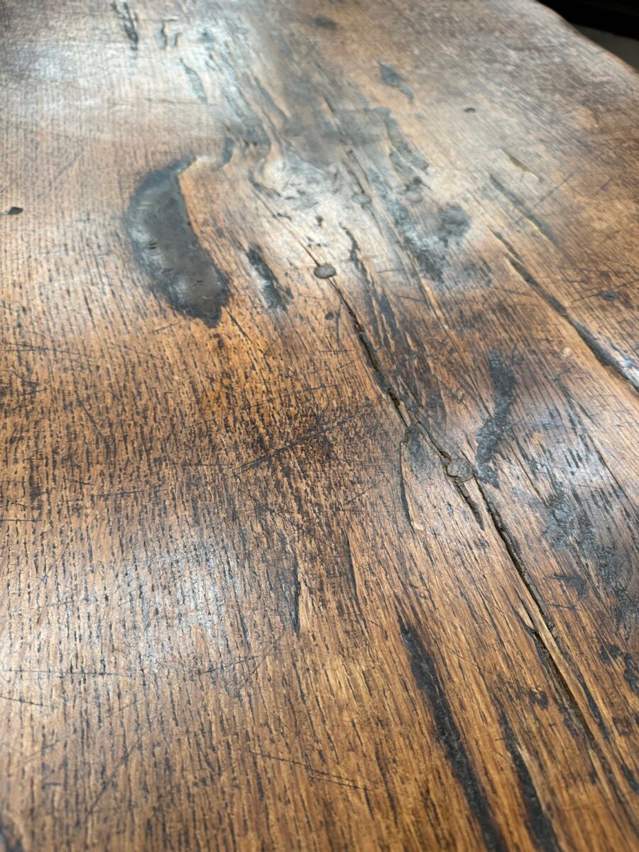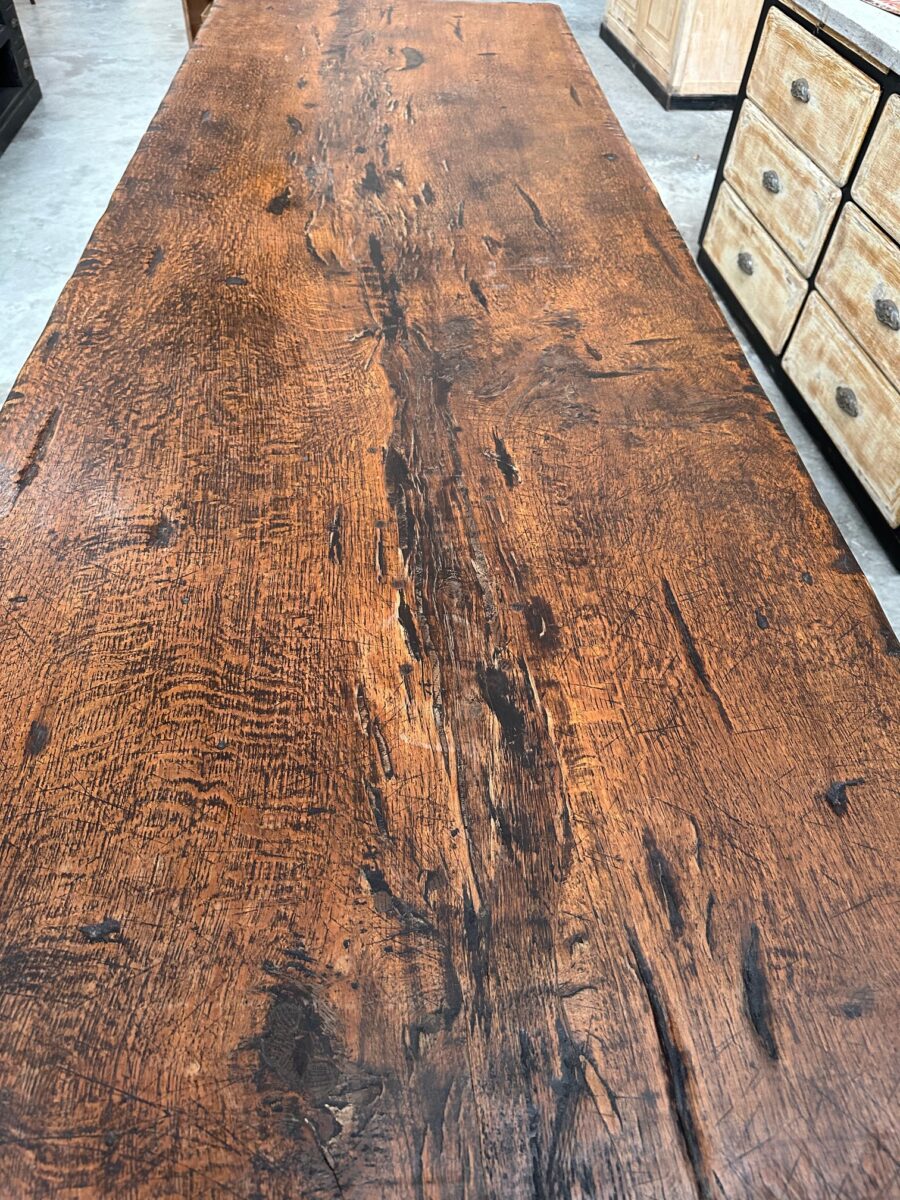 Sa fabrication exceptionnelle en fait une pièce rare. En effet, son magnifique plateau est constitué d’une seule pièce et son piètement a été monté à l’ancienne.
