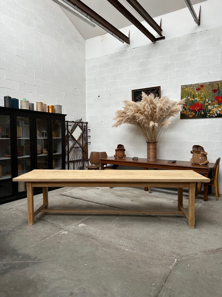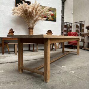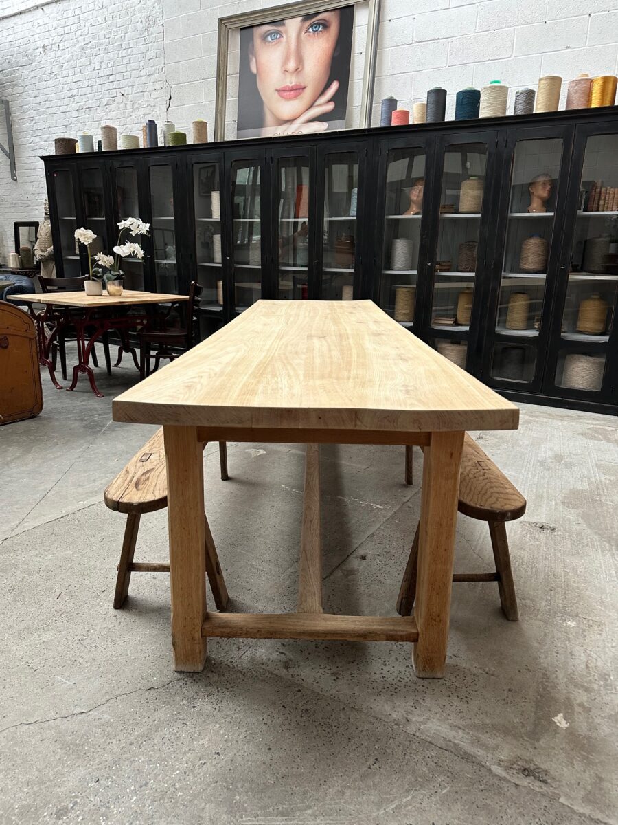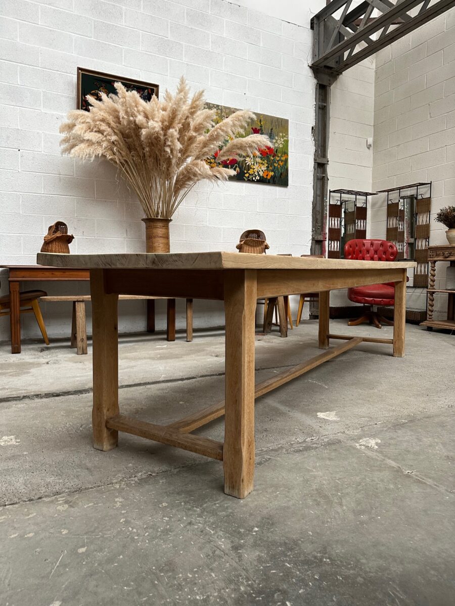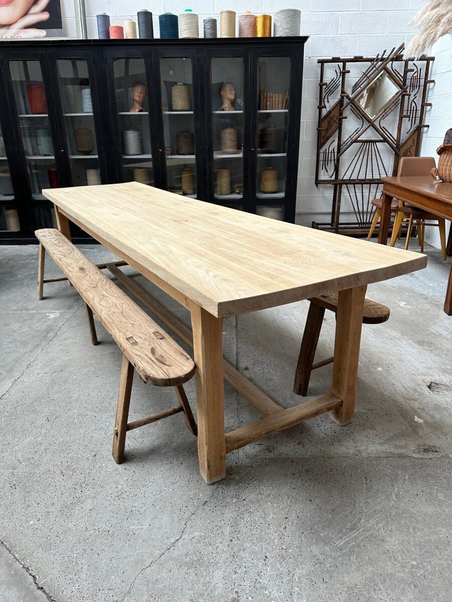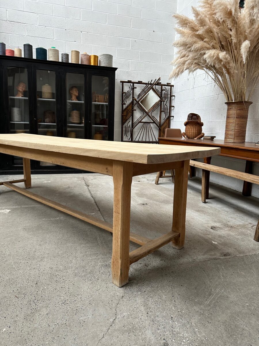 Cette table de ferme en chêne massif, datant des années 60, a été entièrement restaurée.