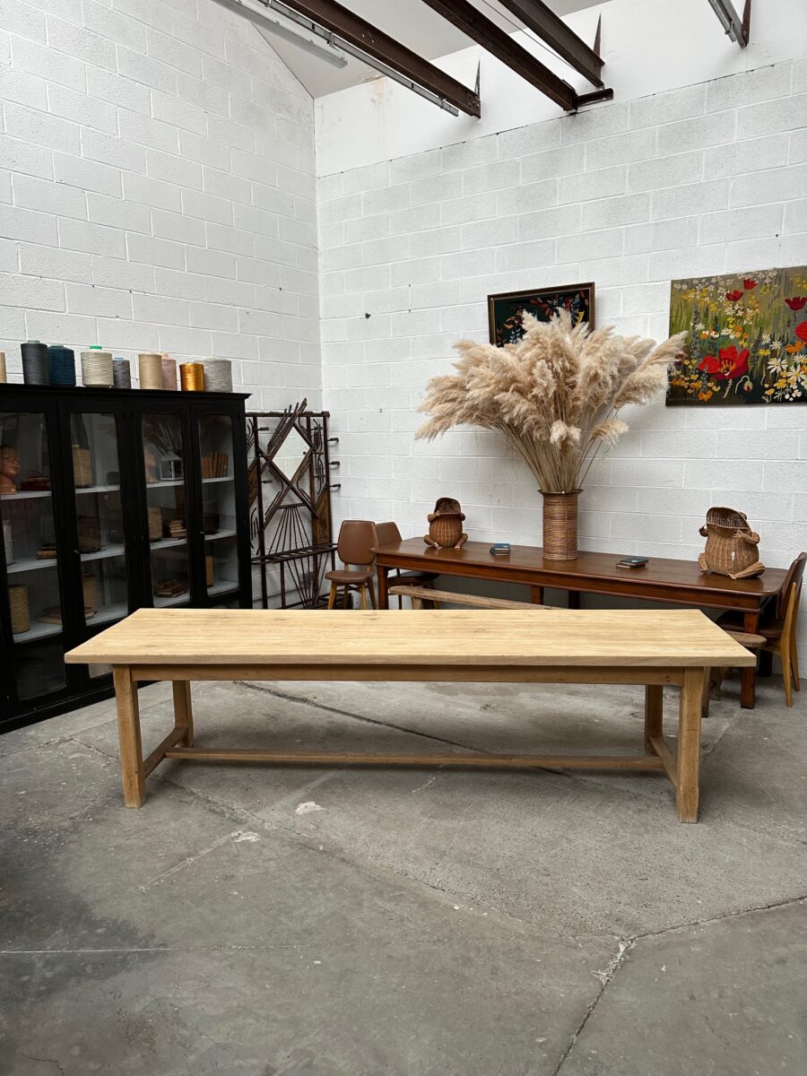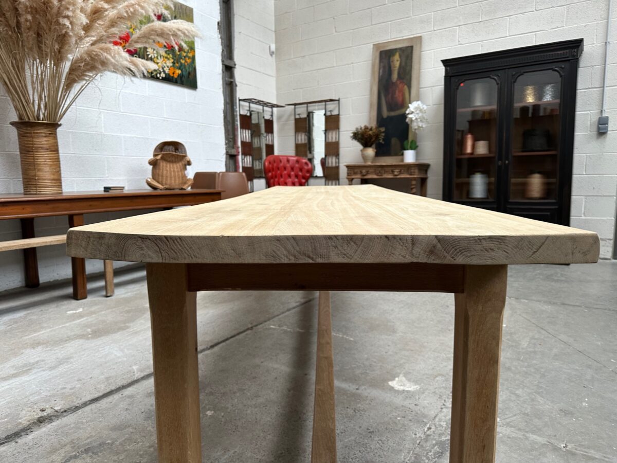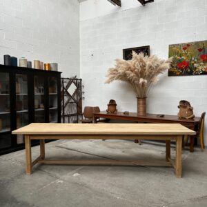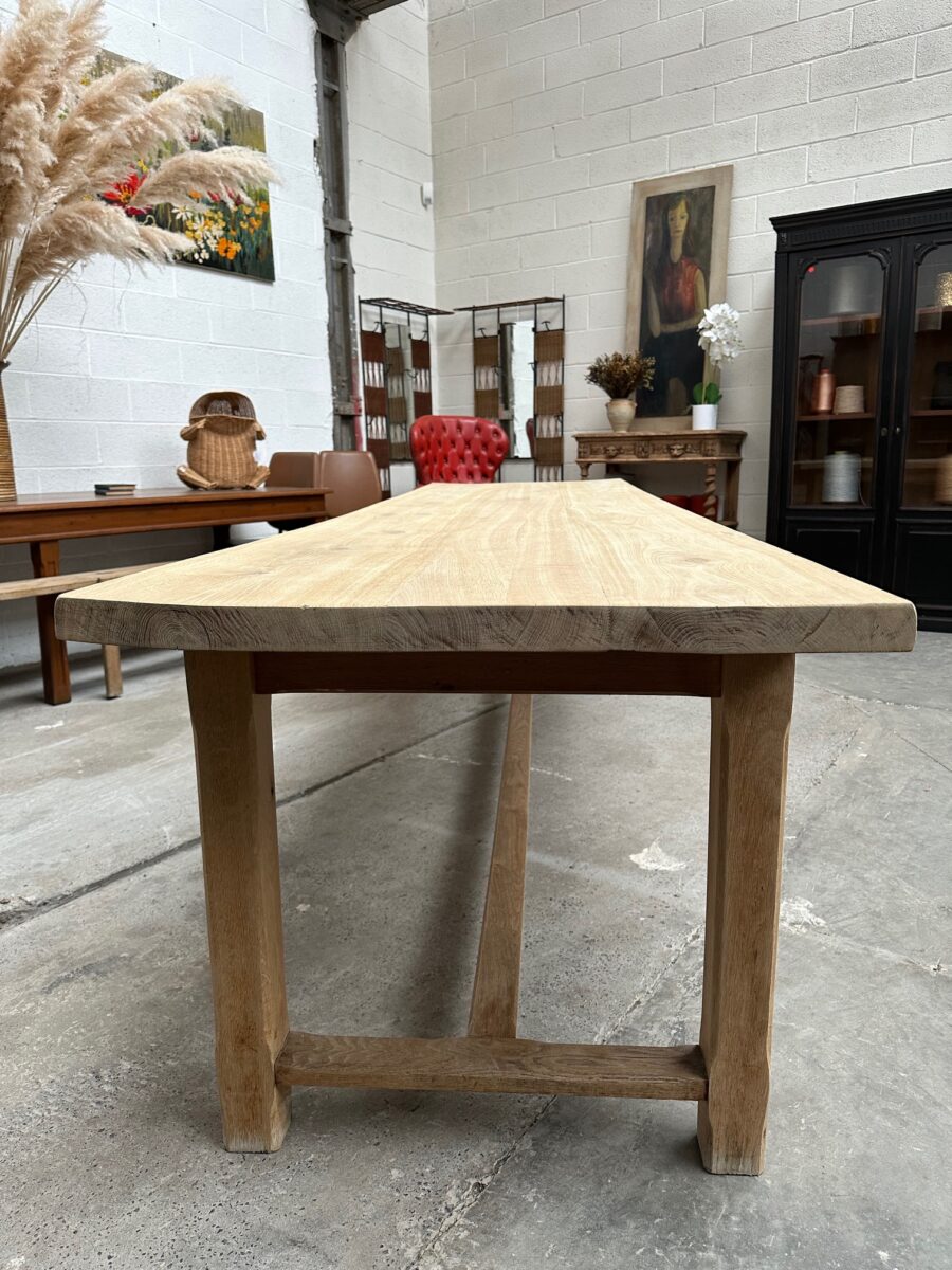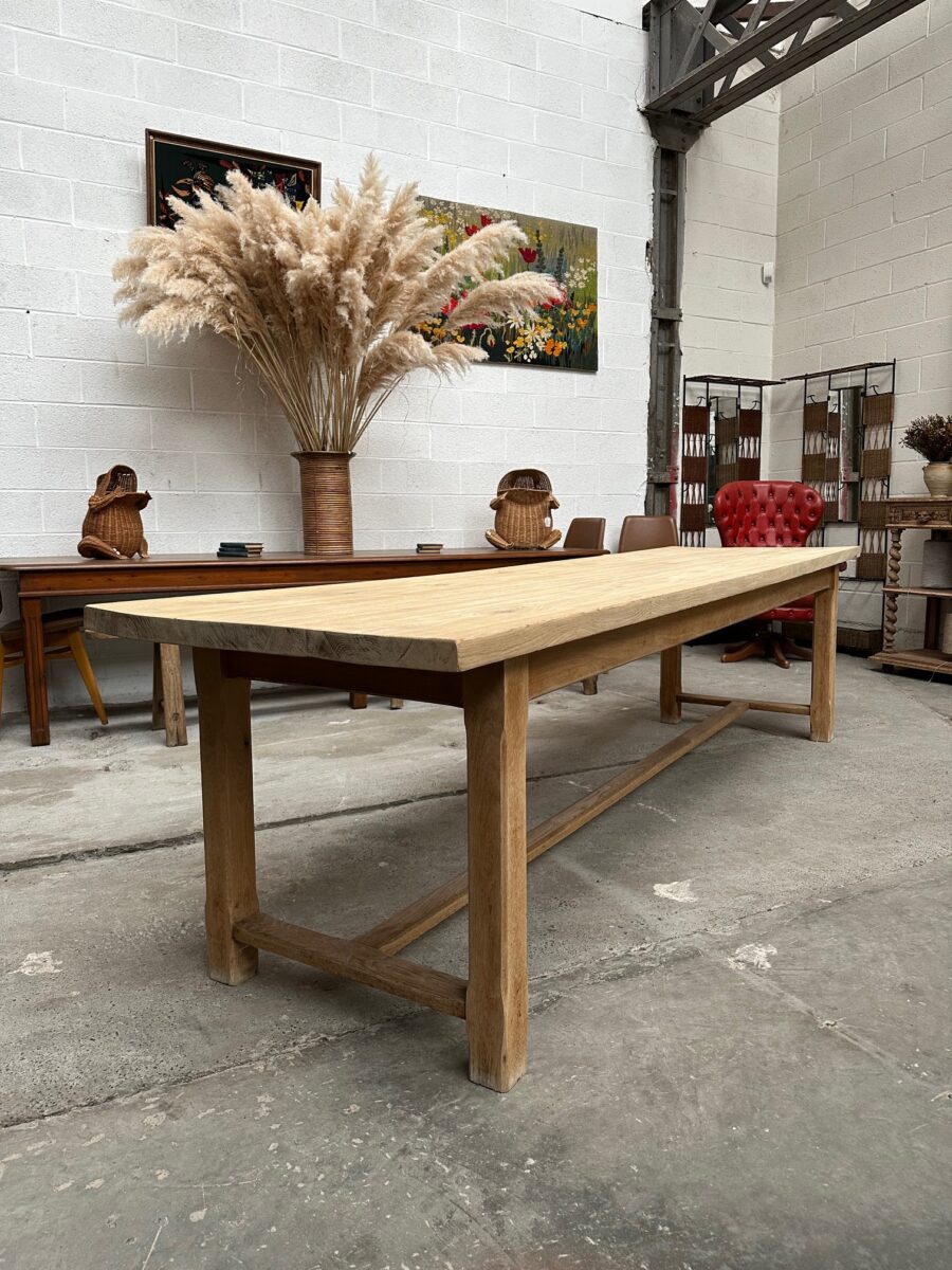 Cette table de ferme en chêne massif, datant des années 60, a été entièrement restaurée.