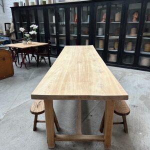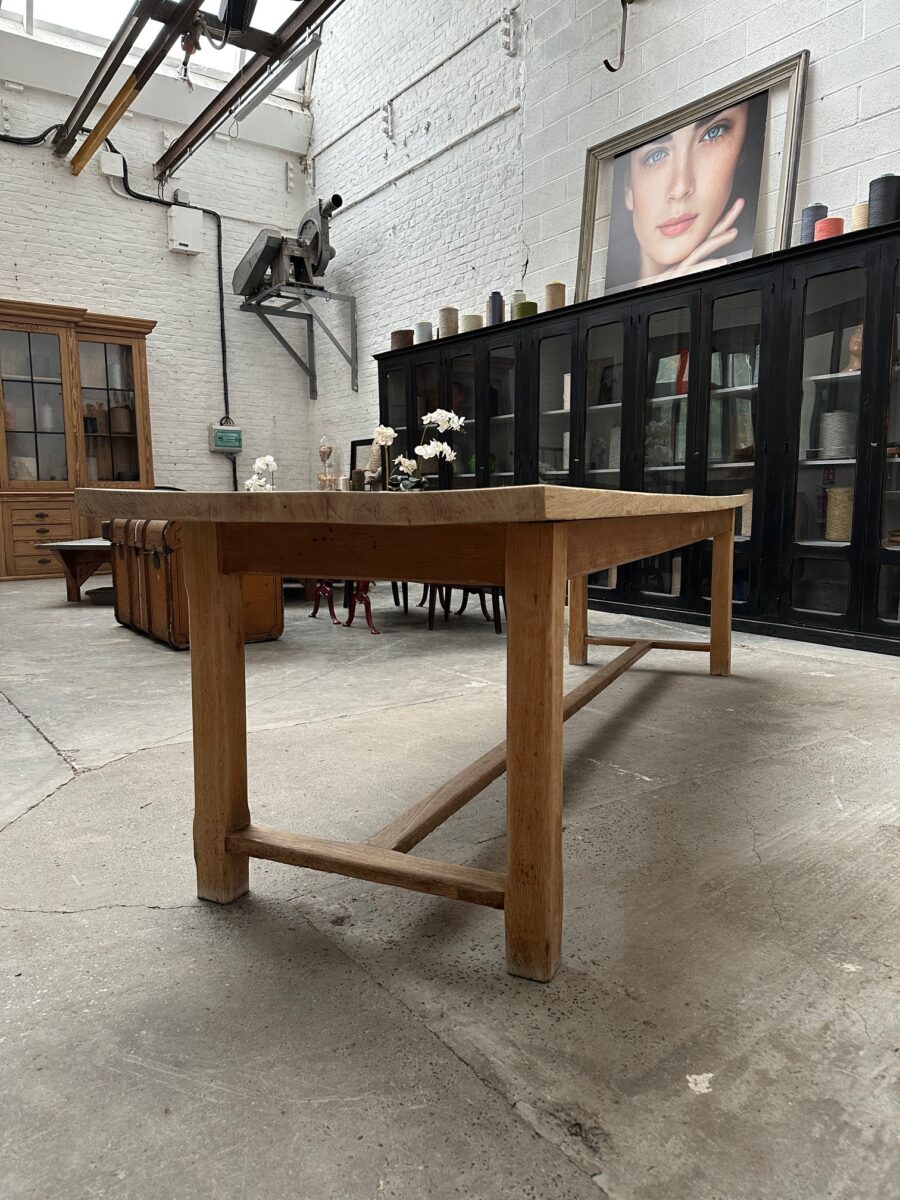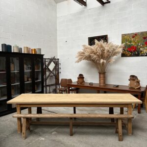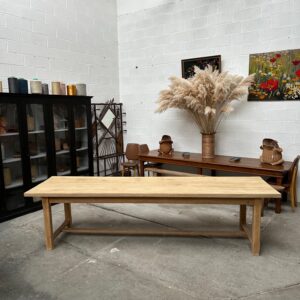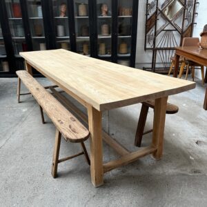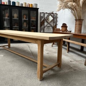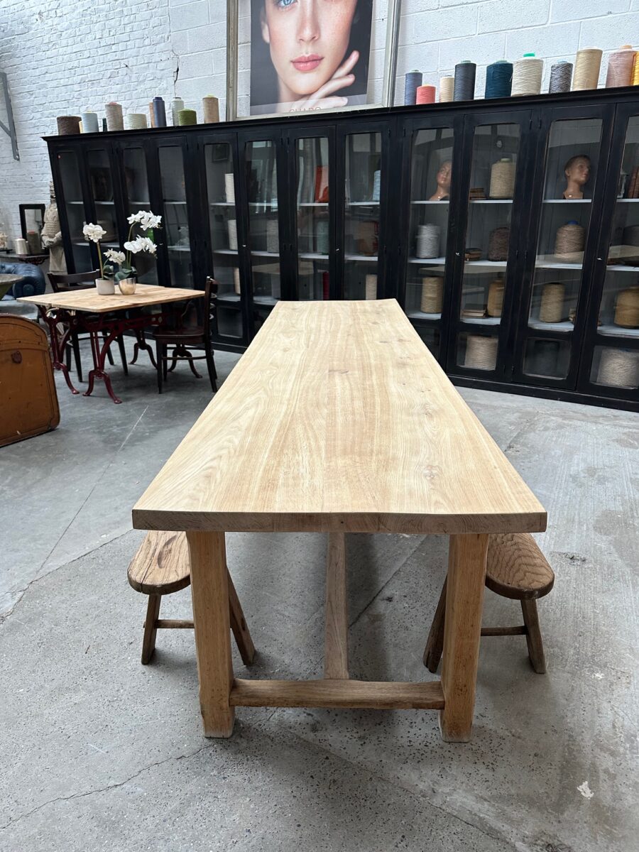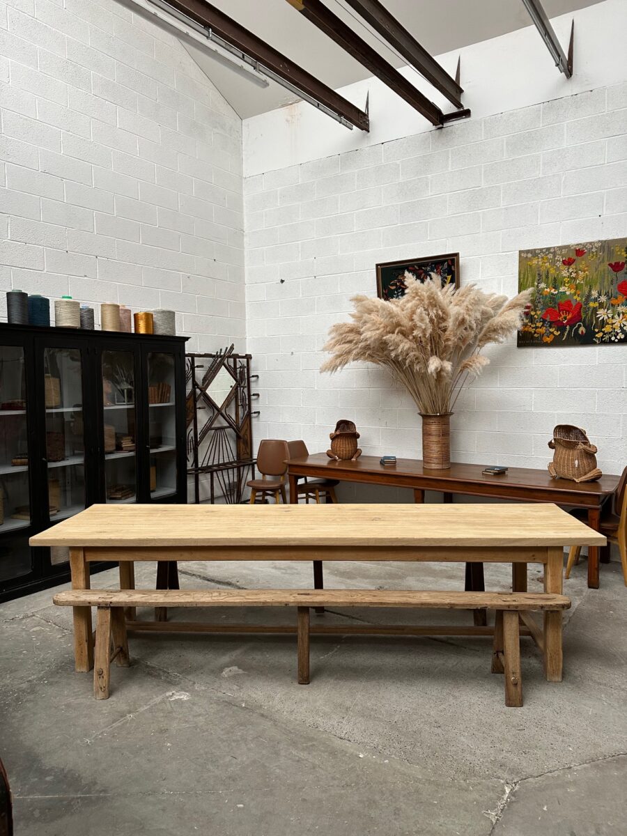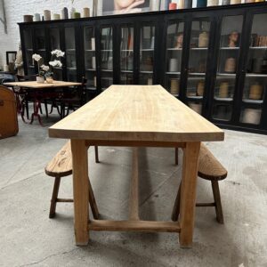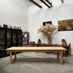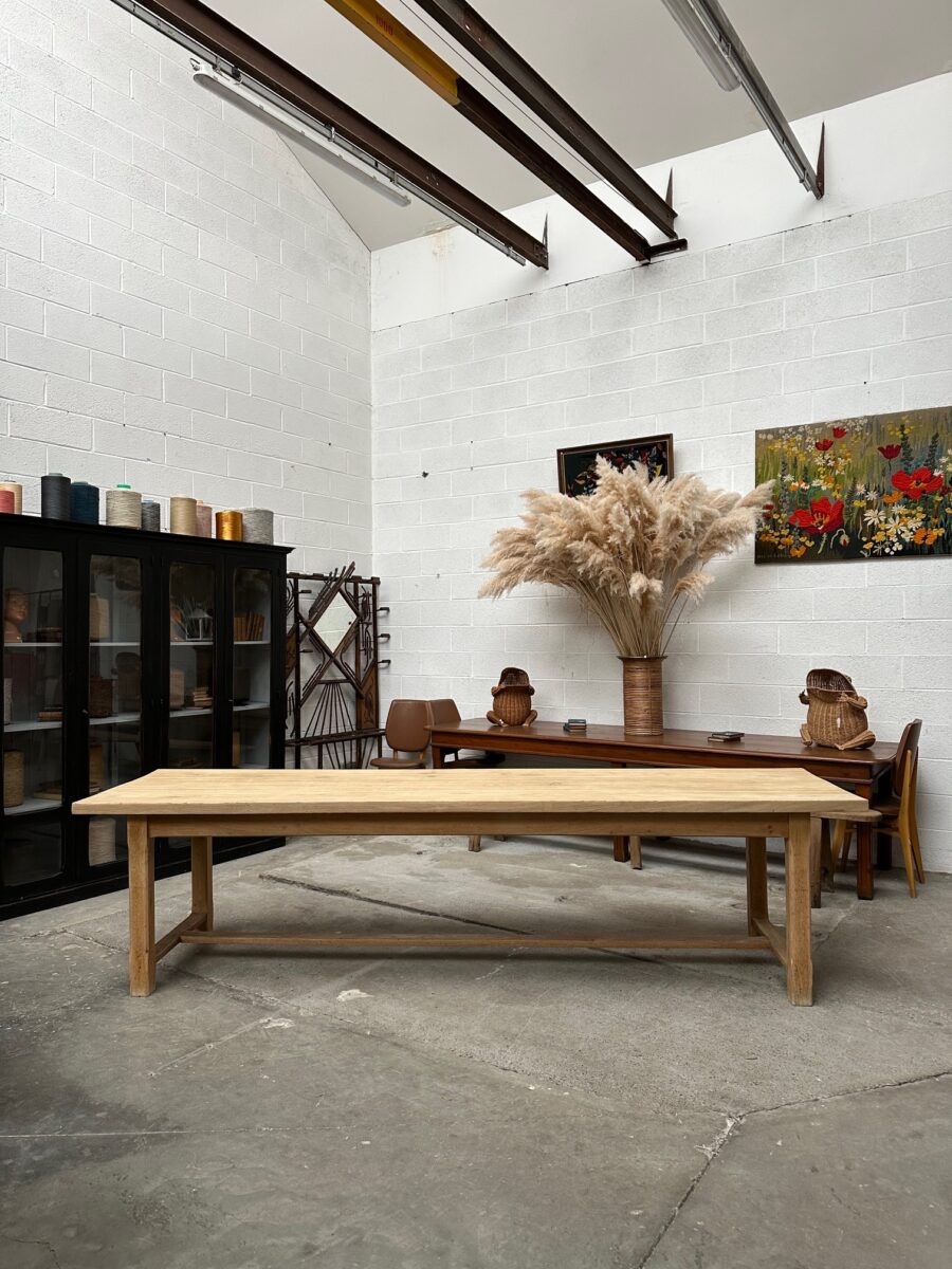 Cette table de ferme en chêne massif, datant des années 60, a été entièrement restaurée.