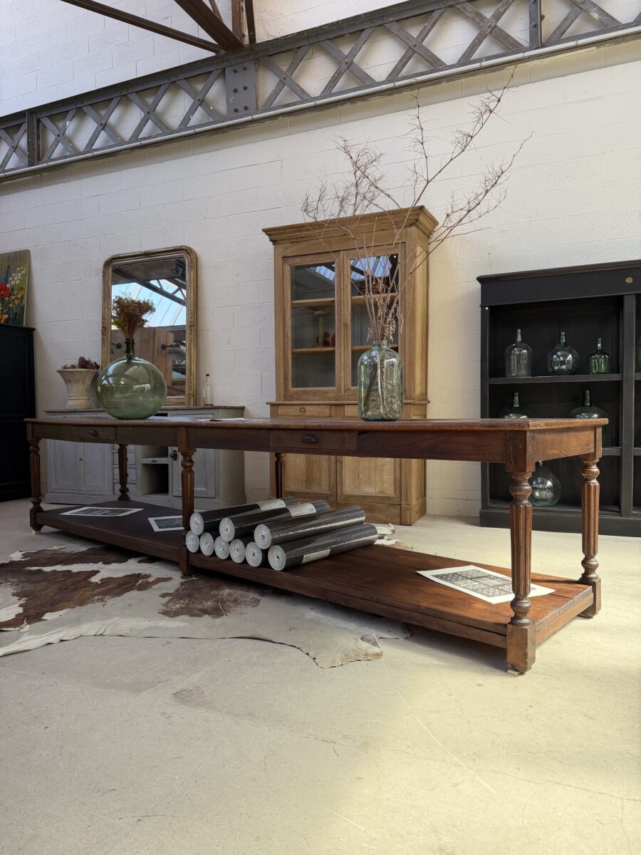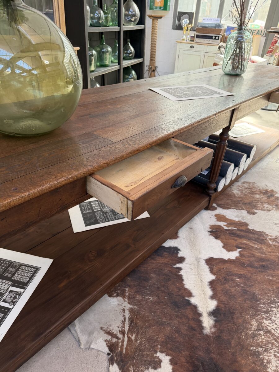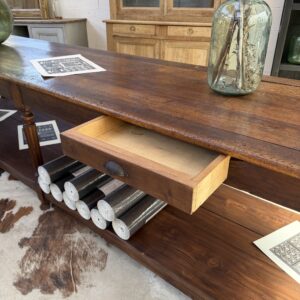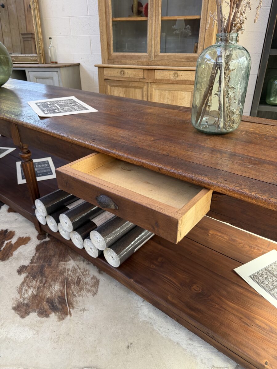 Incroyable table de drapier en chêne et sapin (plateau du bas) datant du XIXème siècle.