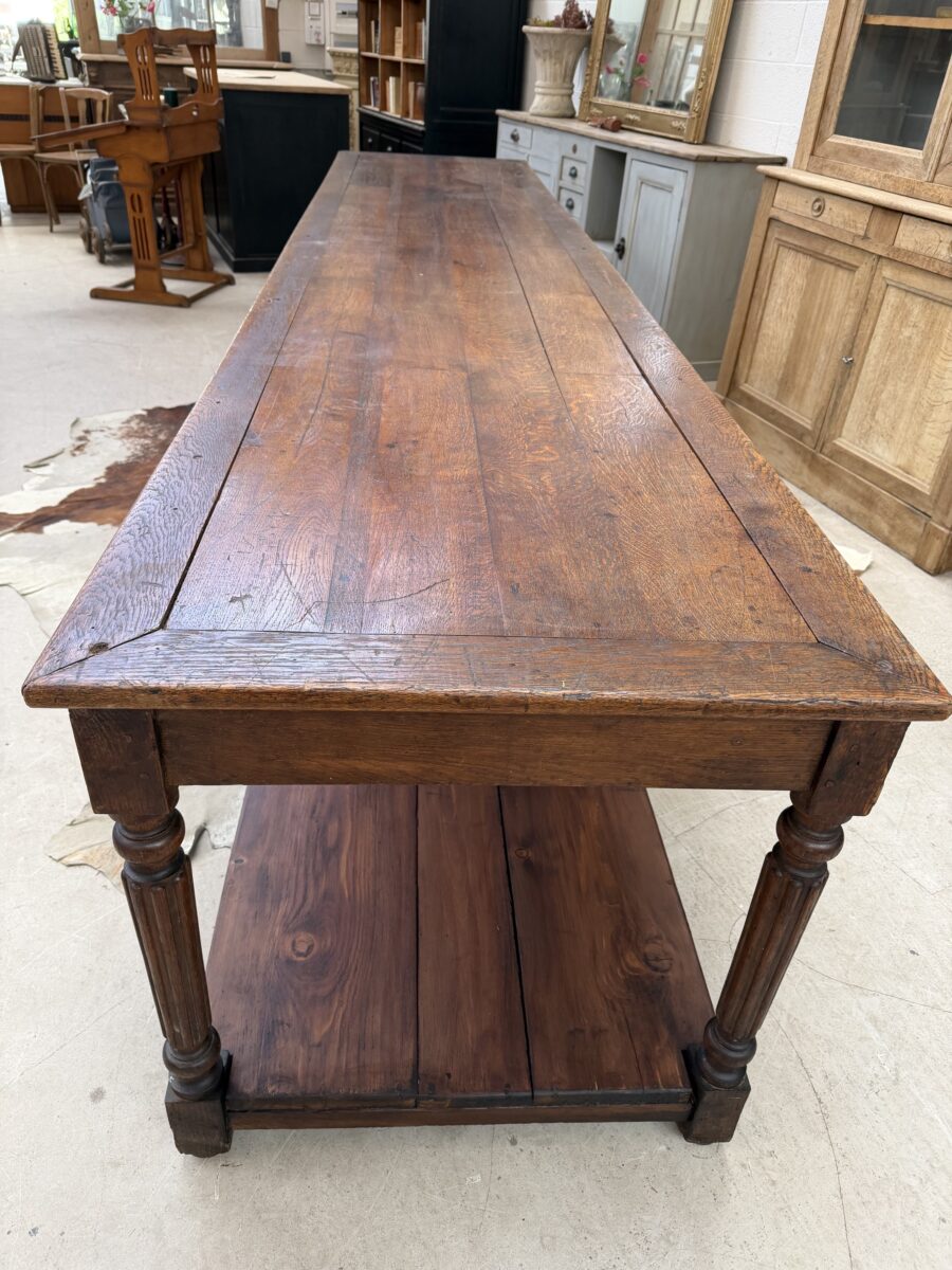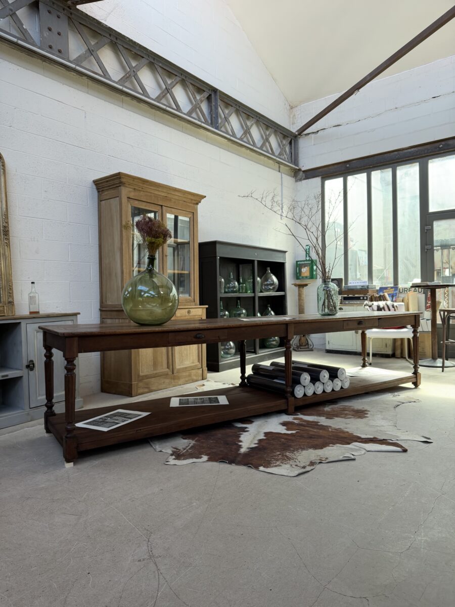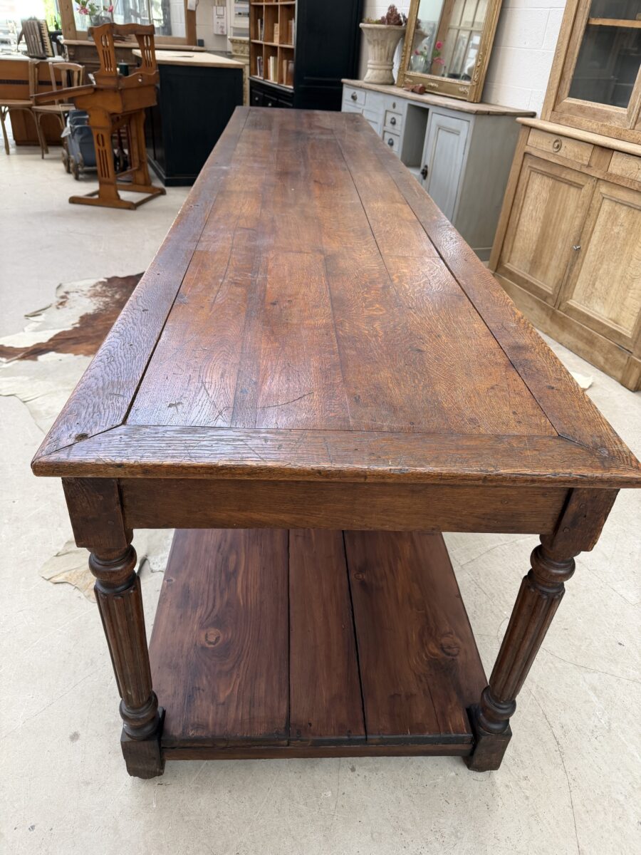 Incroyable table de drapier en chêne et sapin (plateau du bas) datant du XIXème siècle.