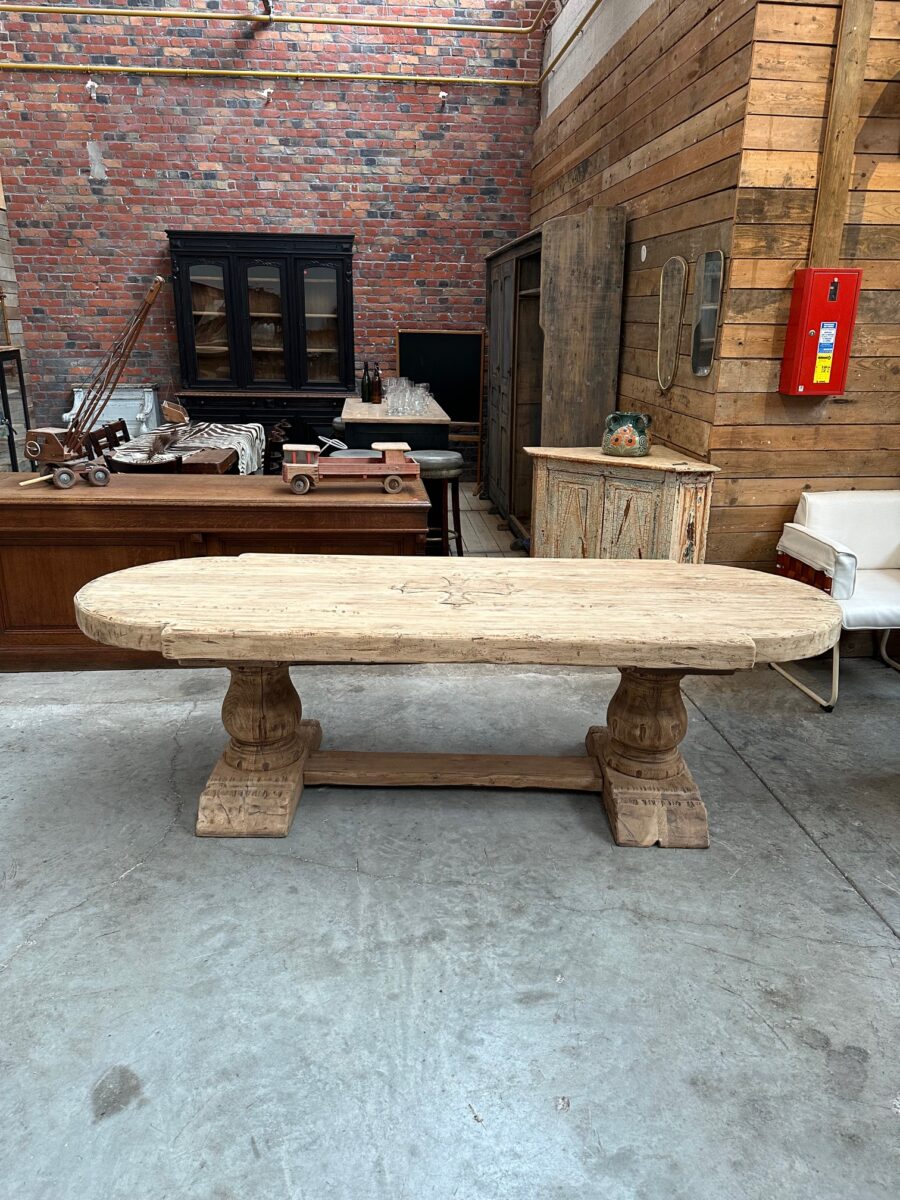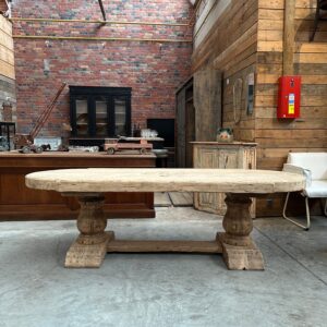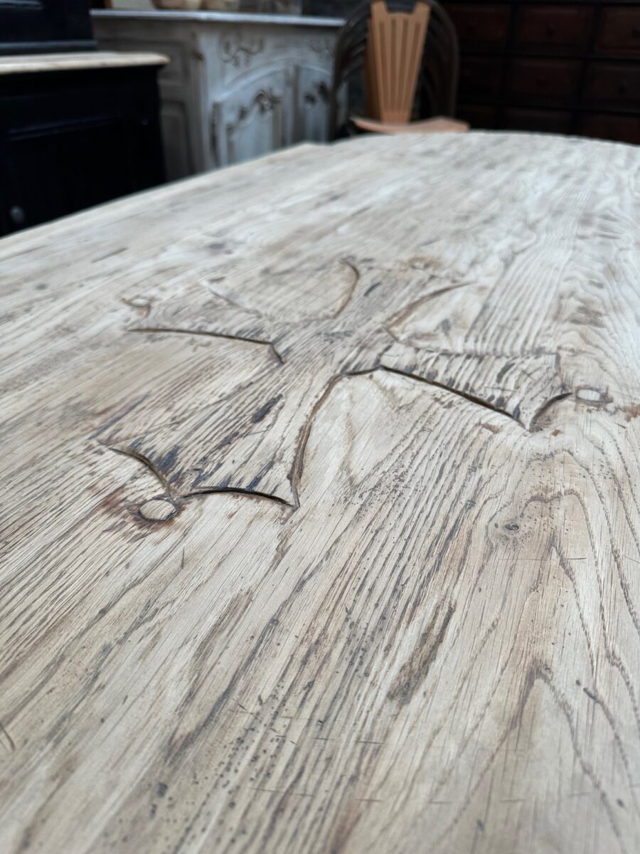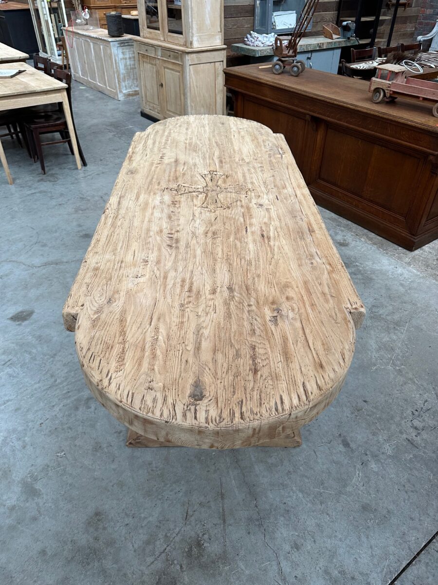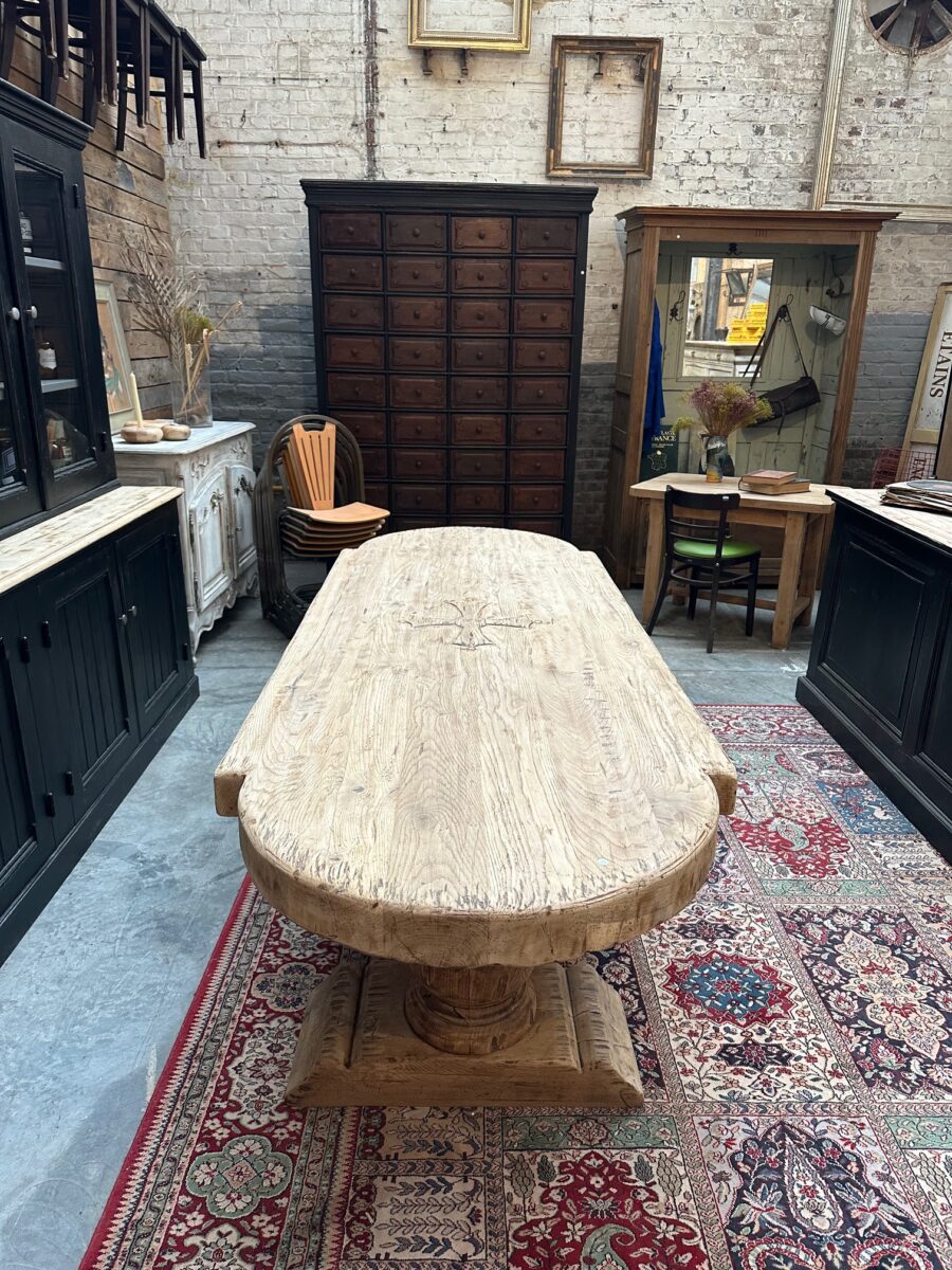 Cette ancienne table de château en chêne massif a été entièrement restaurée