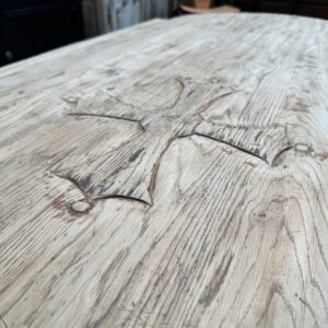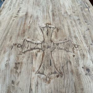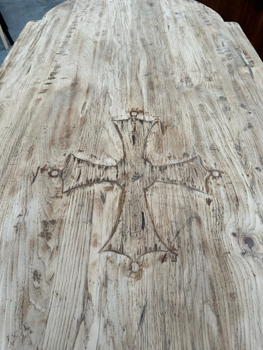 Elle dispose d’un magnifique plateau très épais (9 cm) gravé en son centre d’une croix de Malte.