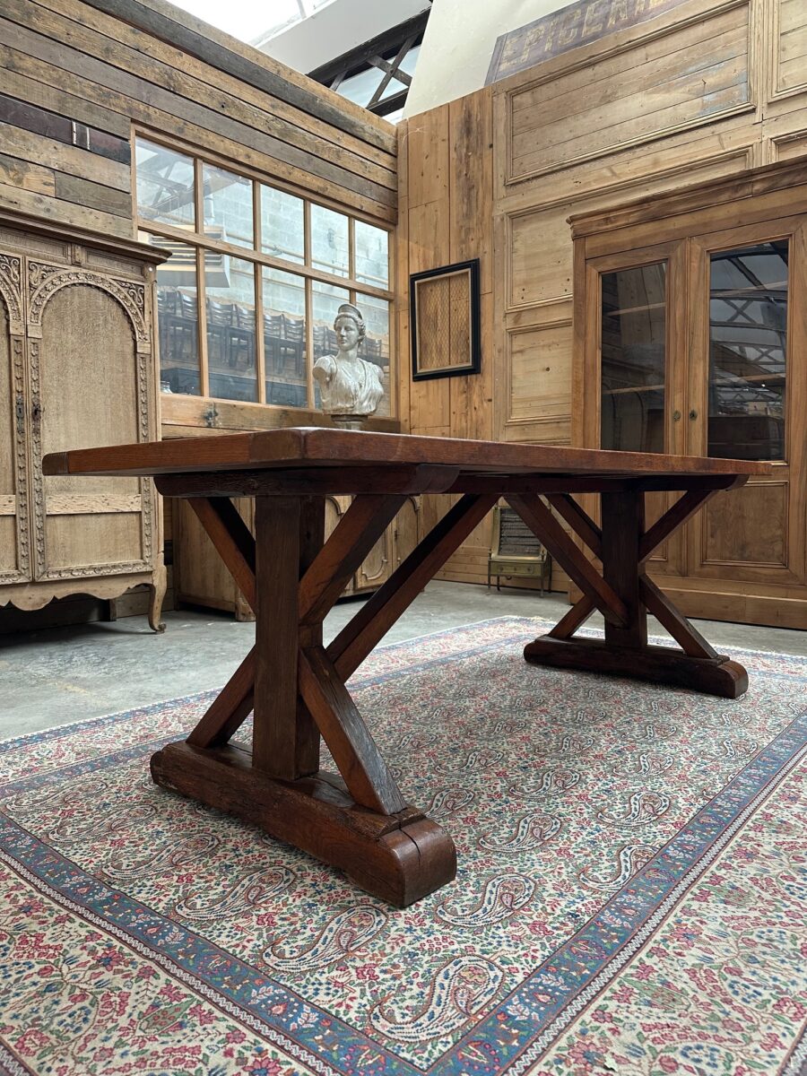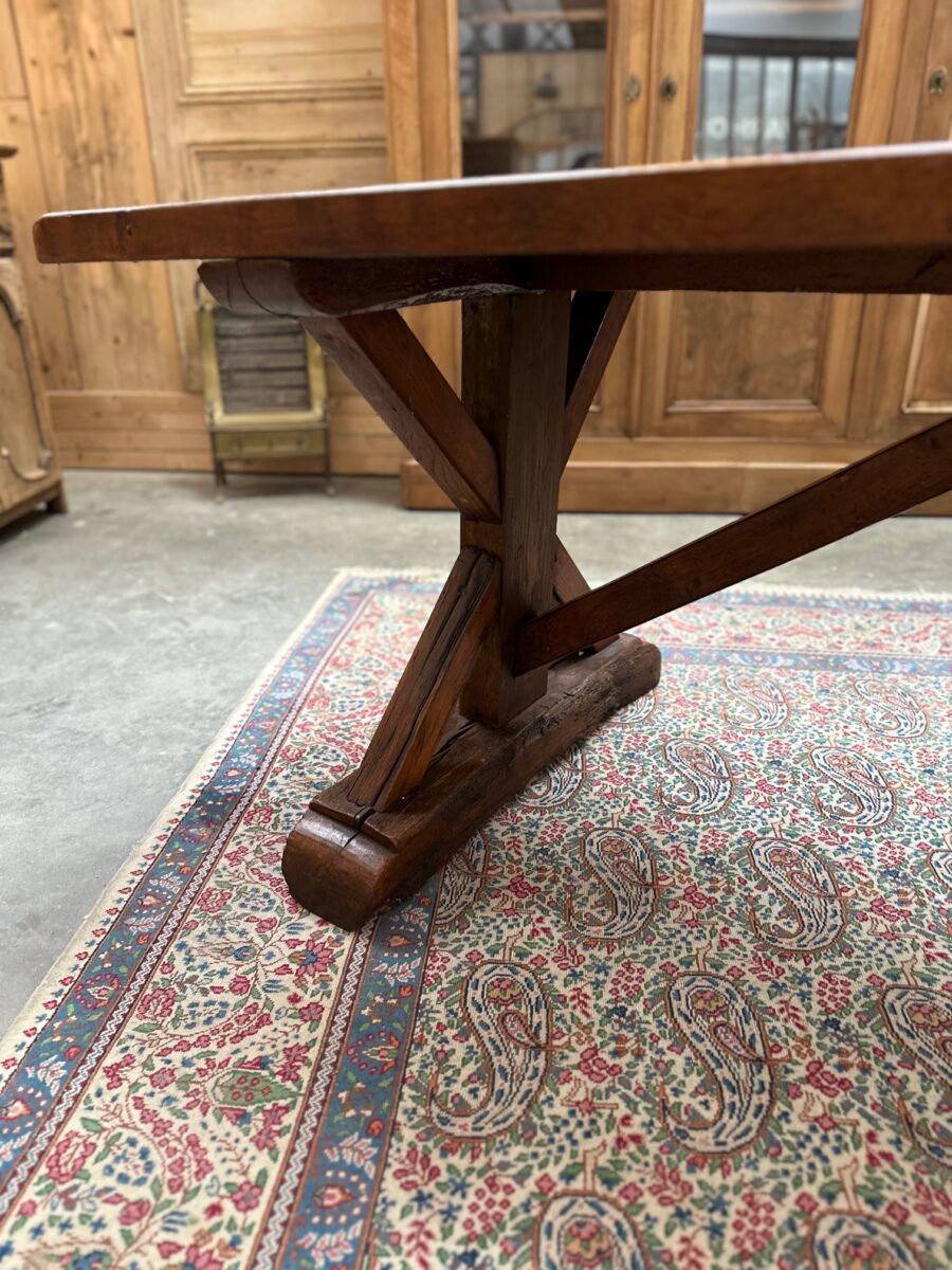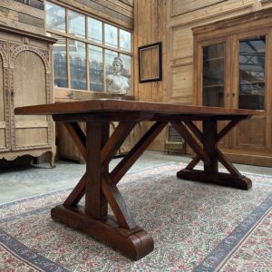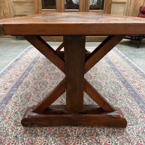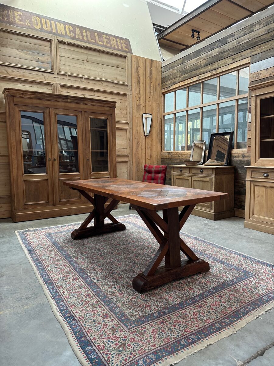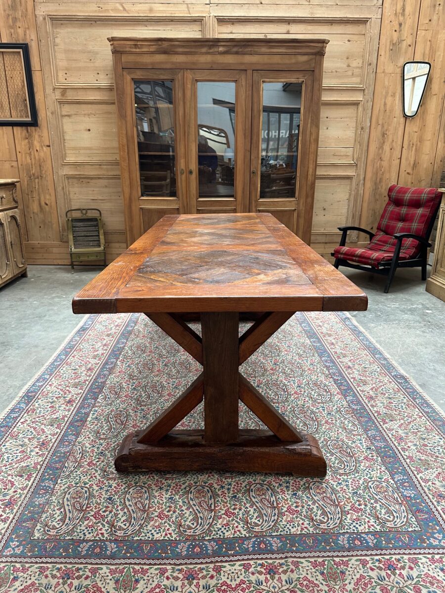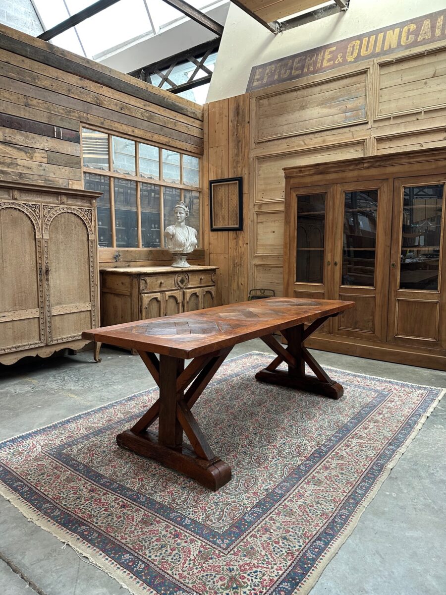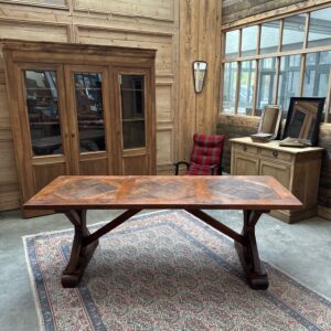 Elle dispose d’un magnifique plateau au motif « Parquet de Versailles » et d’un piètement croisé