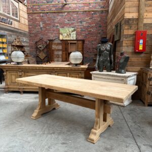 Cette table des années 60 en chêne massif a été totalement restaurée